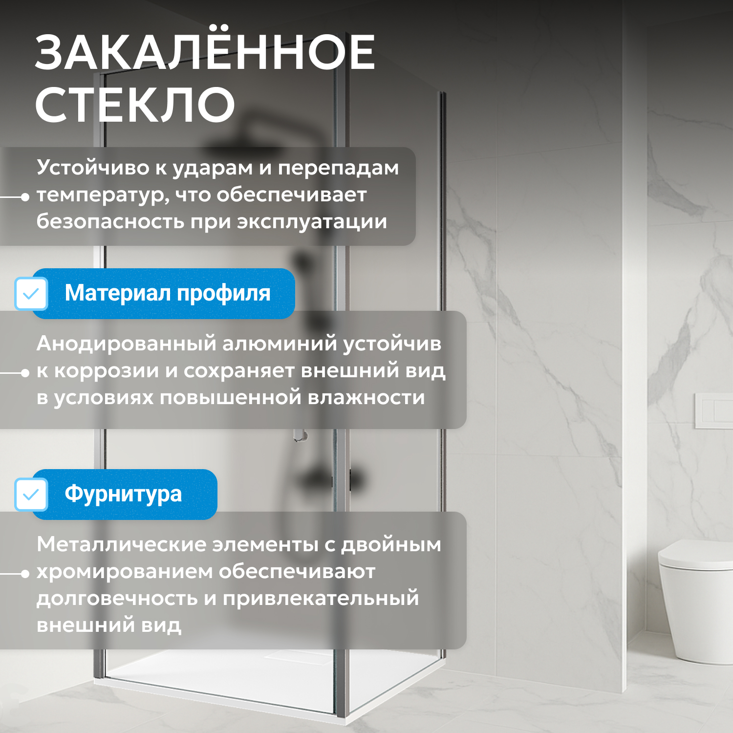 Универсальная конструкция предполагает монтаж с левой или правой стороны в зависимости от особенностей планировки. Прочный хромированный профиль подчеркивает современный стиль и визуально облегчает конструкцию. Металлическая ручка обеспечивает удобство ежедневного использования. Продукция соответствует стандартам немецкого качества и отличается практичным дизайном.
