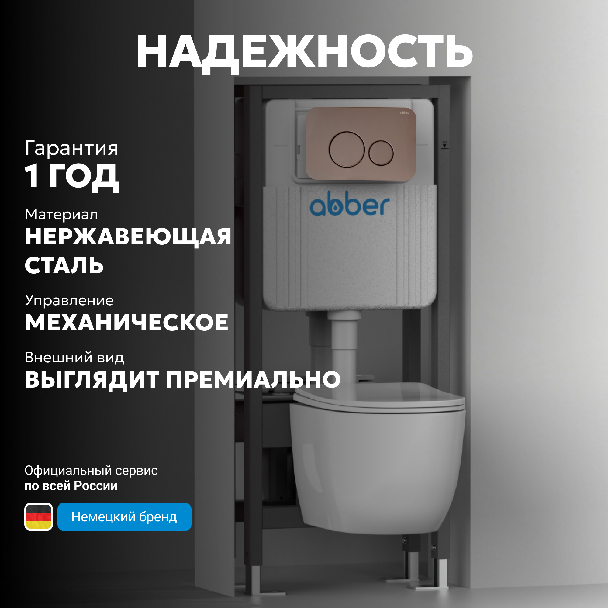 - Совместимость: подходит для всех инсталляция ABBER с механическим смывом (AC0104, AC0105, AC0106, AC0110)
