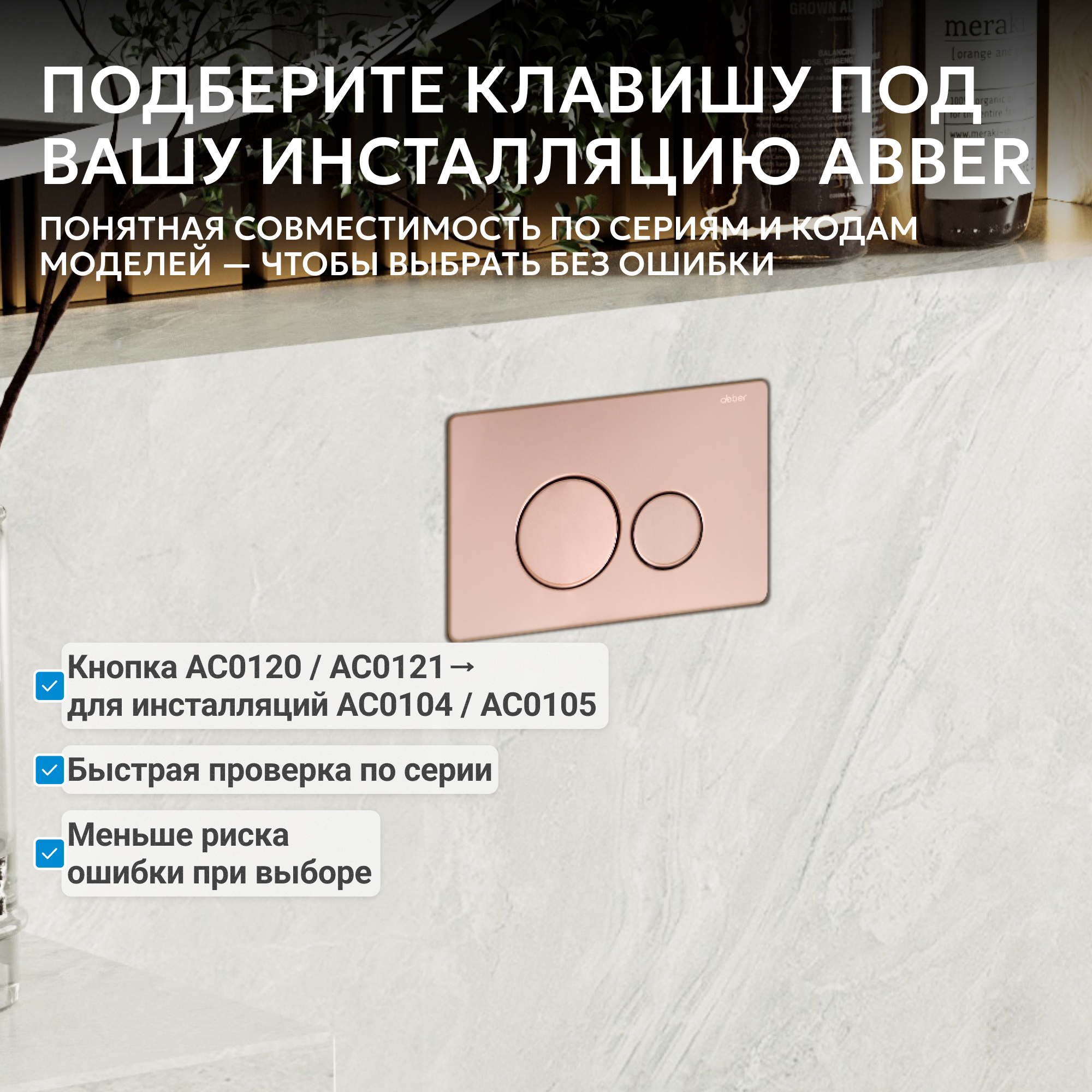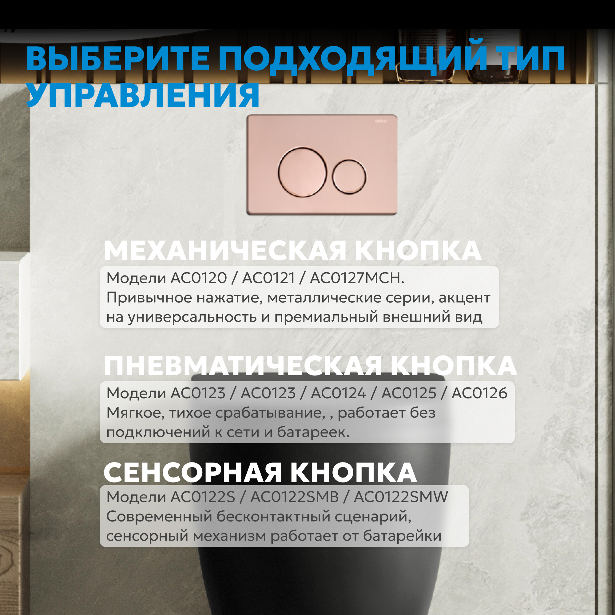 Преобразите санузел с помощью современного аксессуара — кнопка смыва ABBER гармонично впишется как в современные интерьеры.