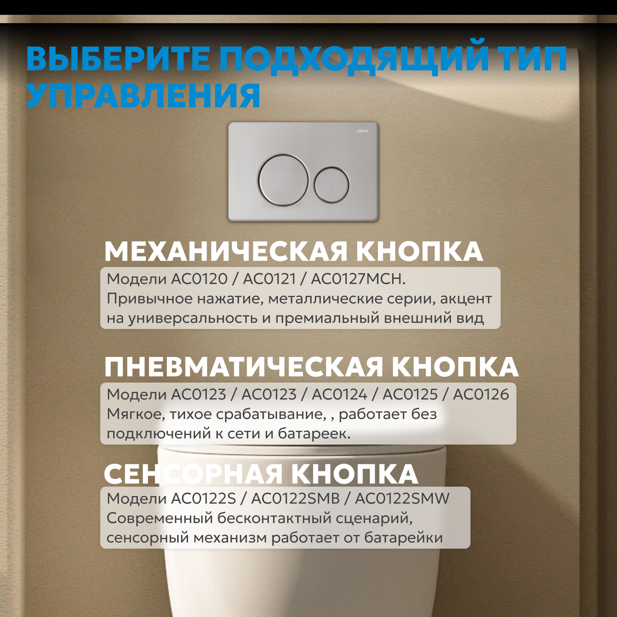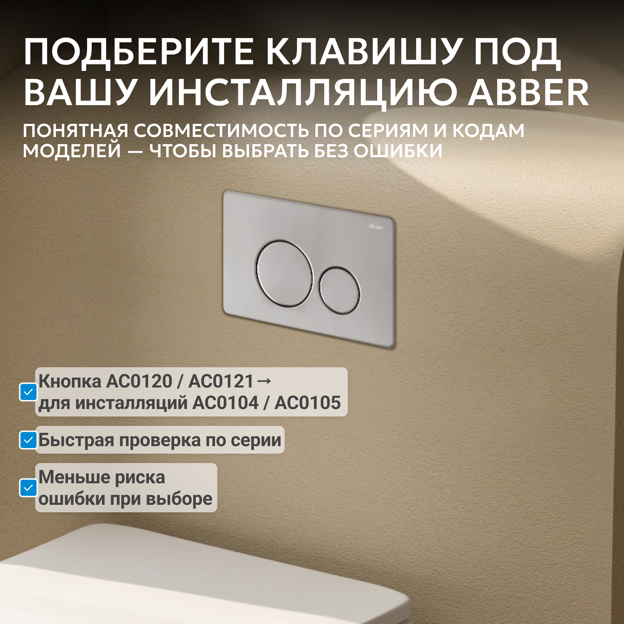 Преобразите санузел с помощью современного аксессуара — кнопка смыва ABBER гармонично впишется как в современные интерьеры.