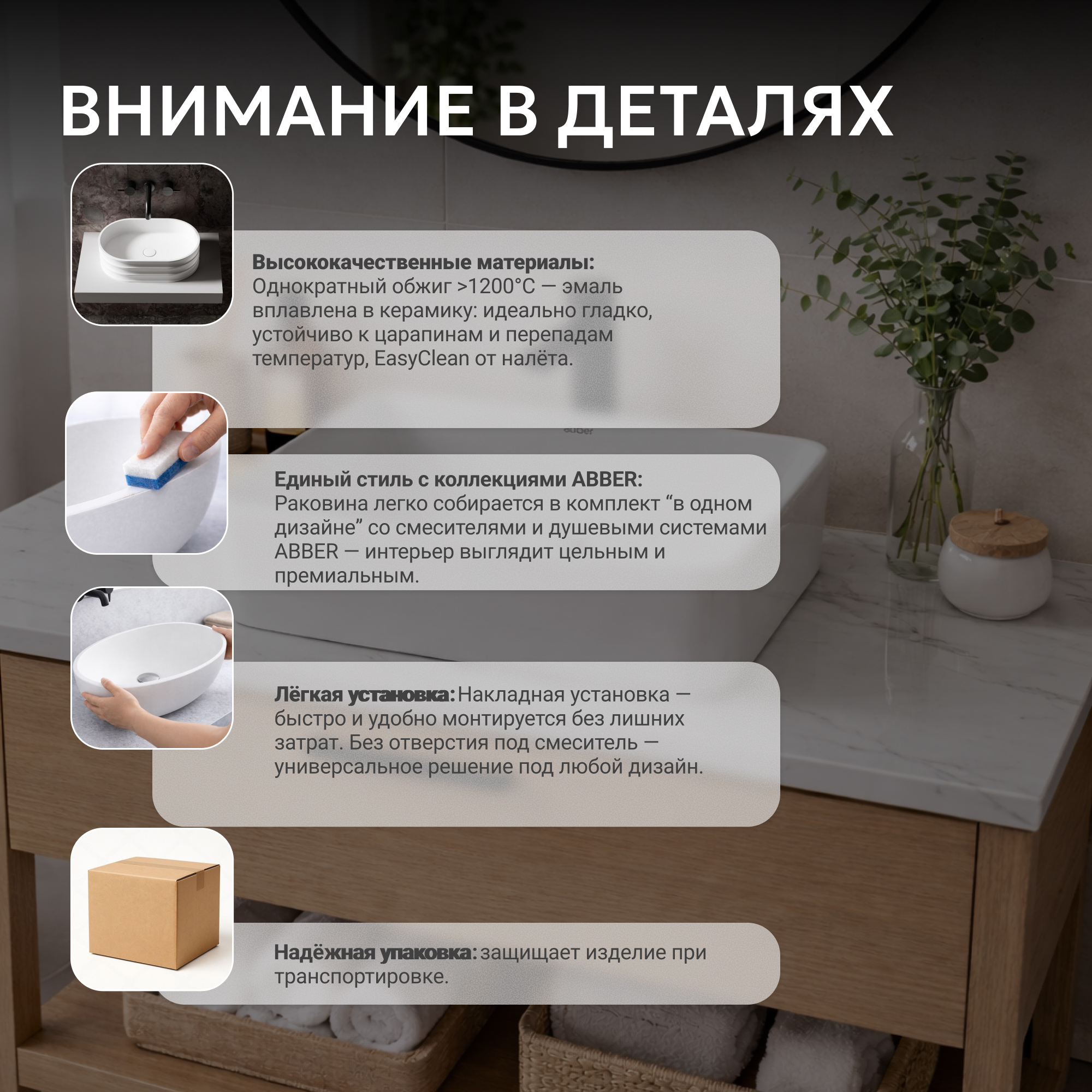 Раковина накладная ABBER Rechteck AC2212 белая