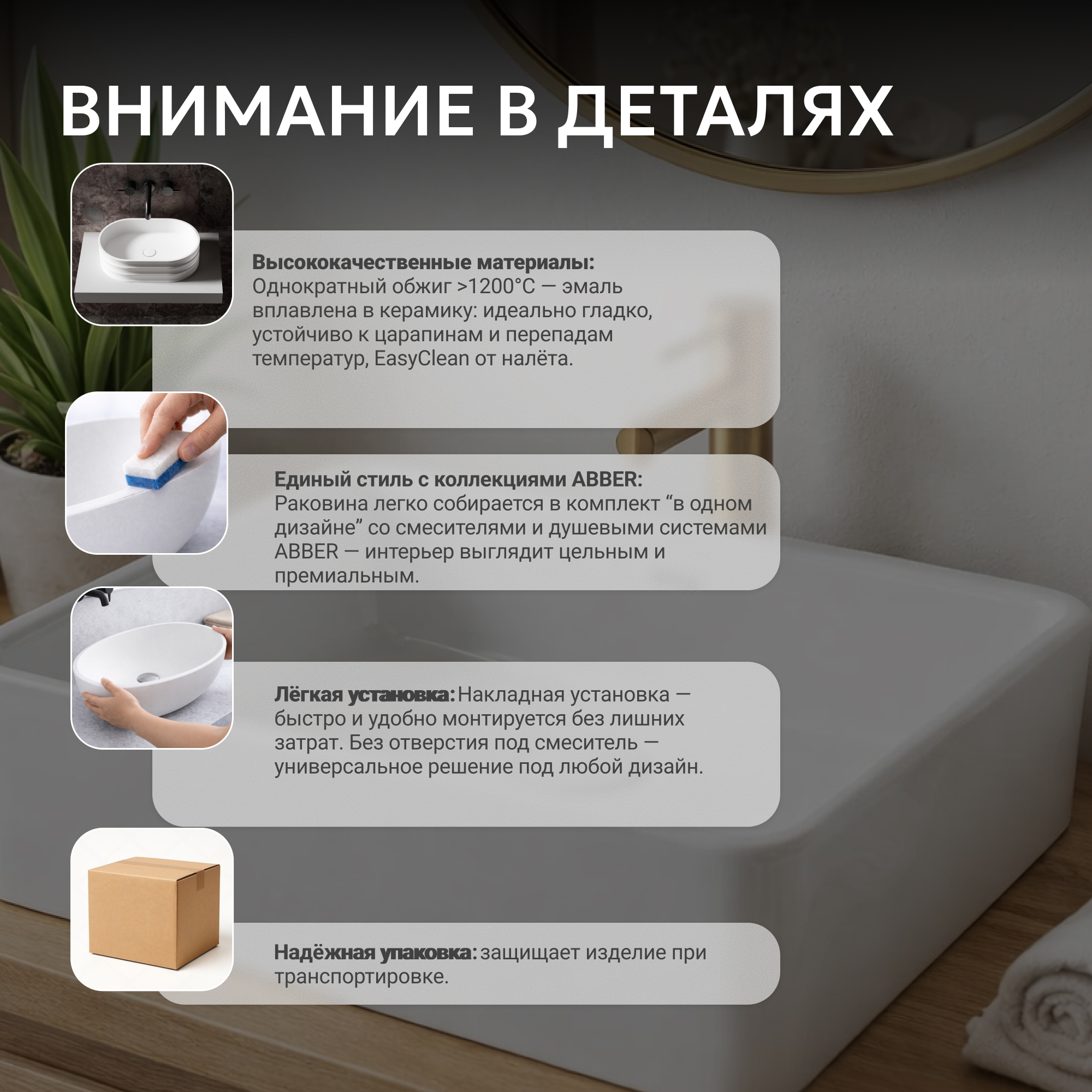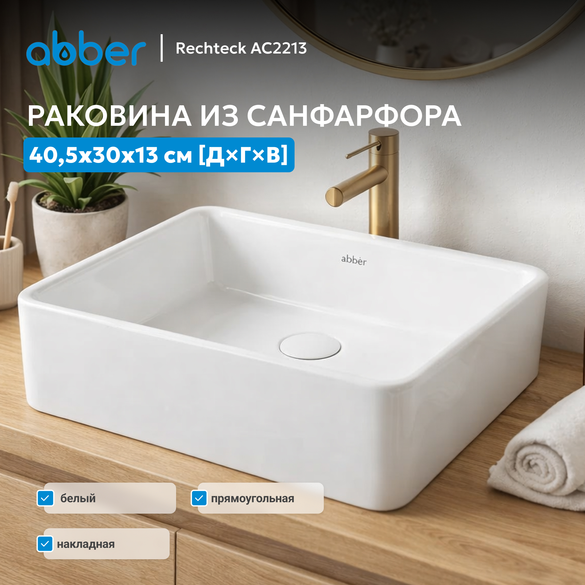 Раковина накладная ABBER Rechteck AC2213 белая
