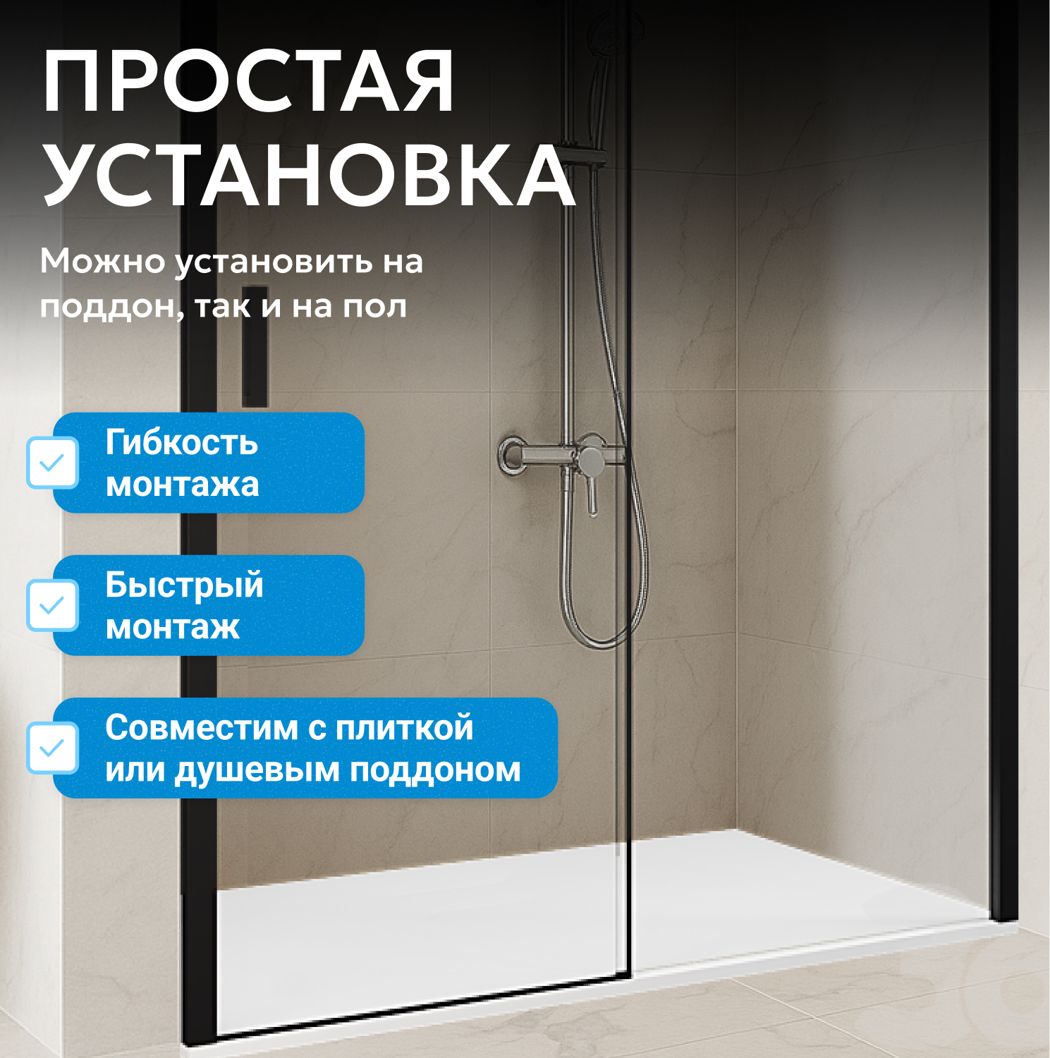 - возможна установка на пол и на поддон, поддон приобретается отдельно