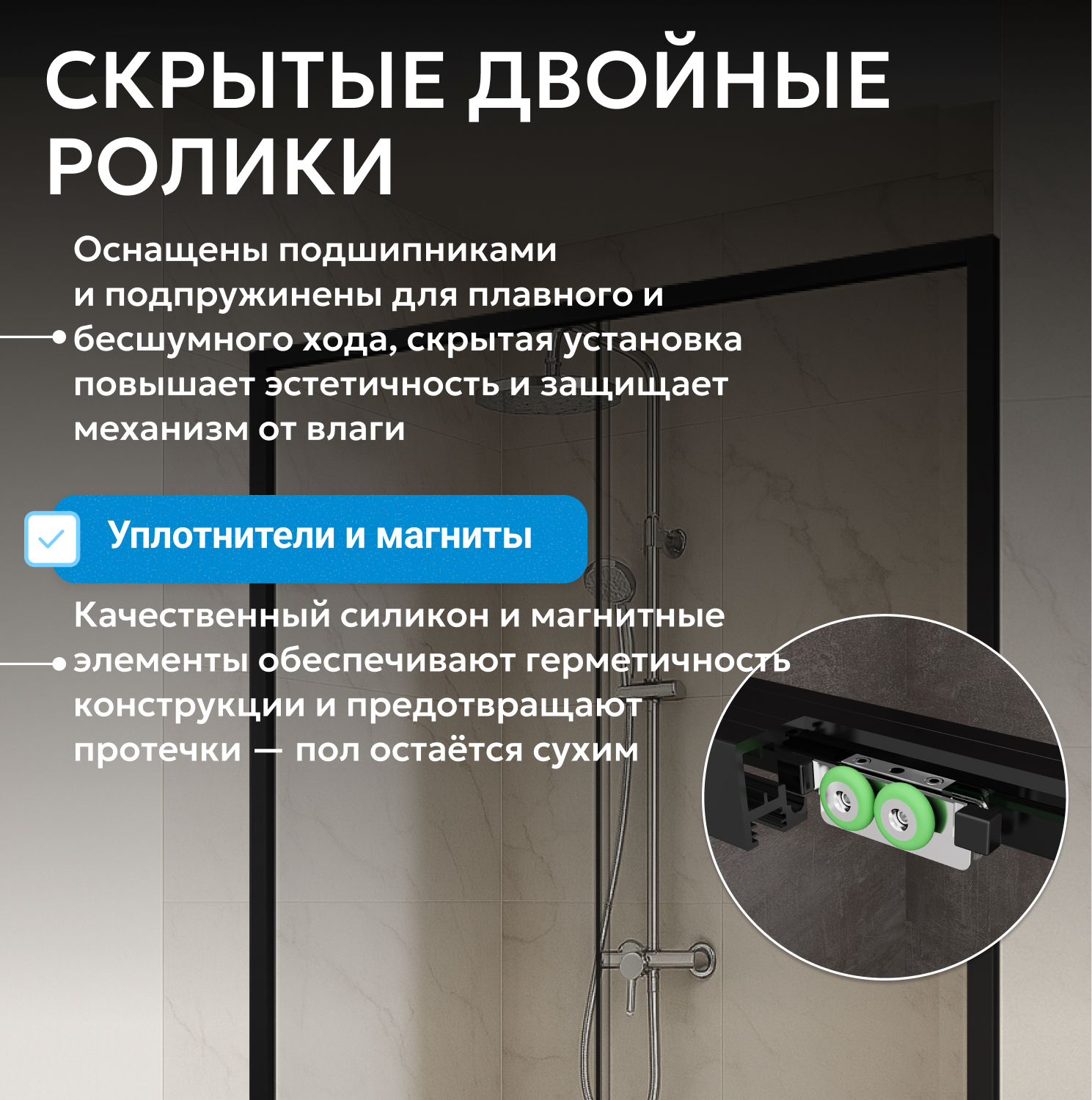 ширина пристенного профиля 60 мм, Soft-close доводчики позаботятся о плавной и бесшумной фиксации двери в крайних положениях