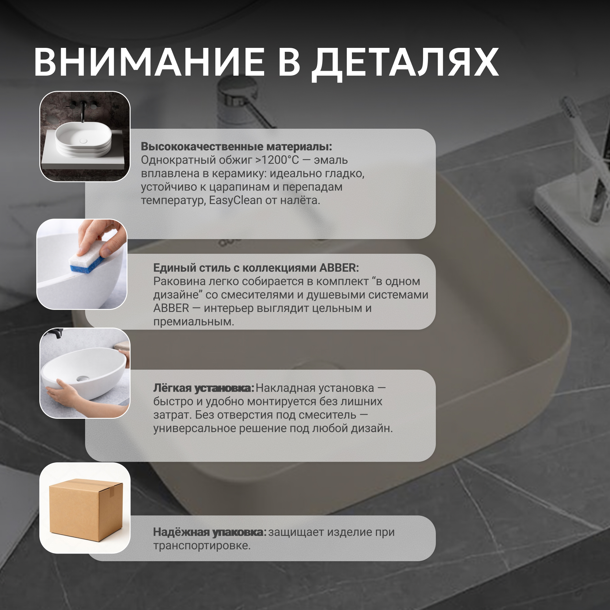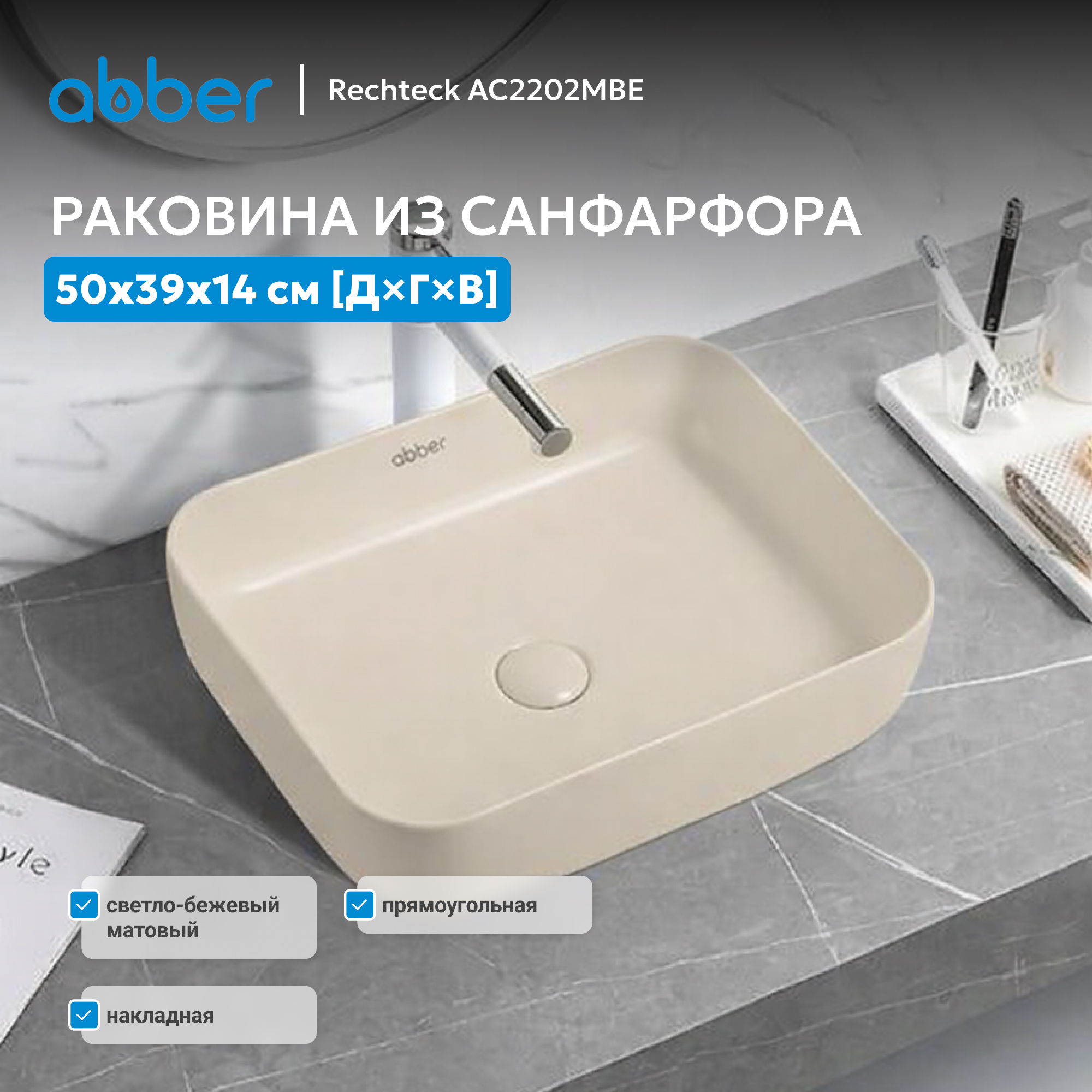 Раковина накладная ABBER Rechteck AC2202MBE светло-бежевая матовая