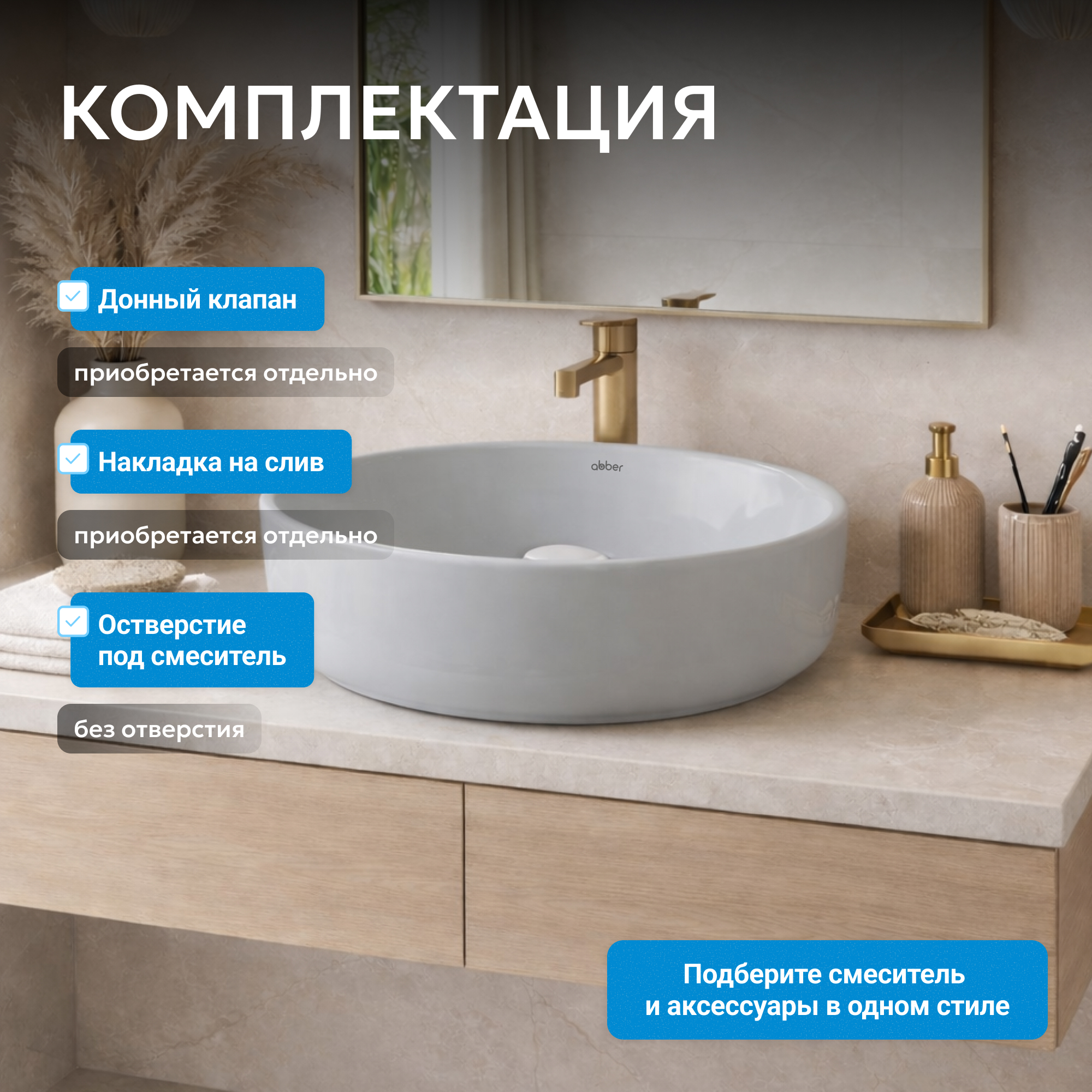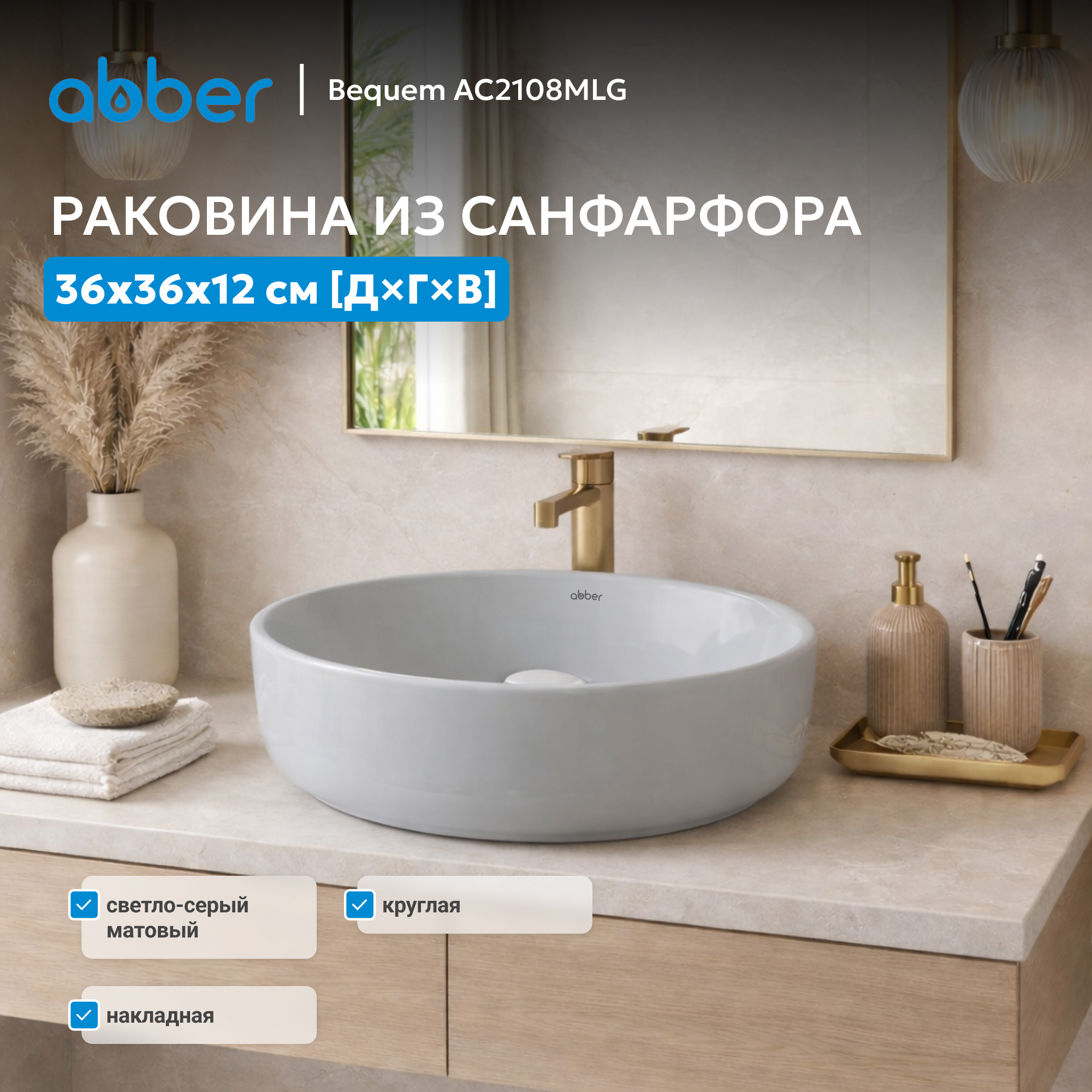 Раковина накладная ABBER Bequem AC2108MLG светло-серая матовая