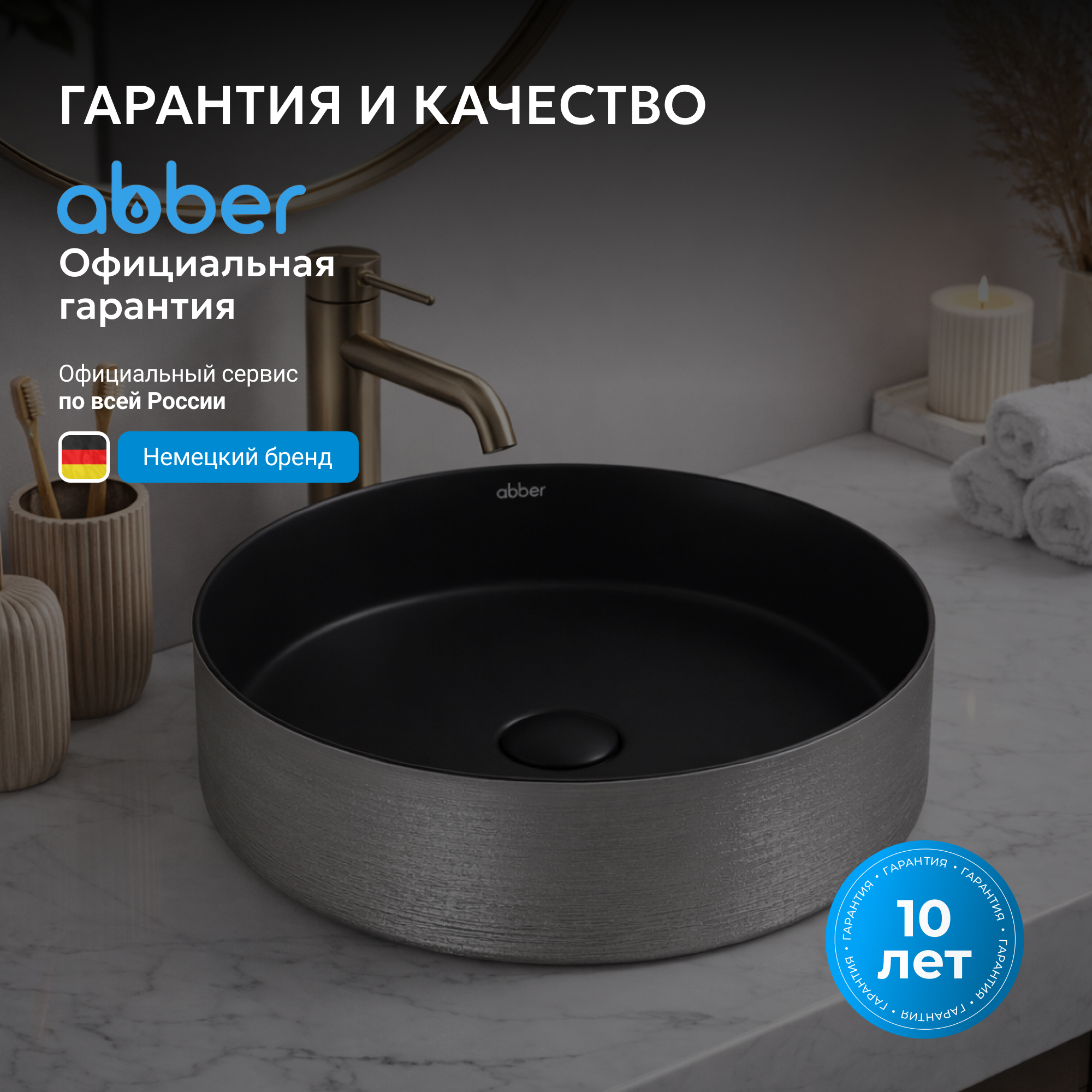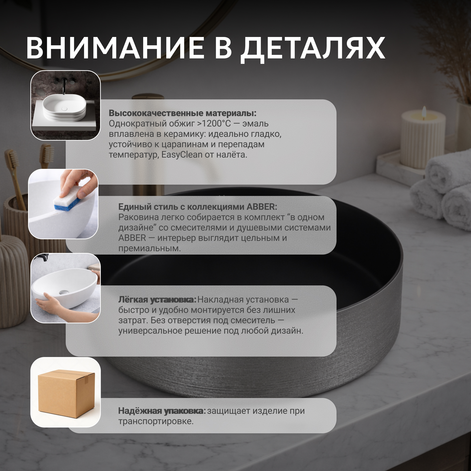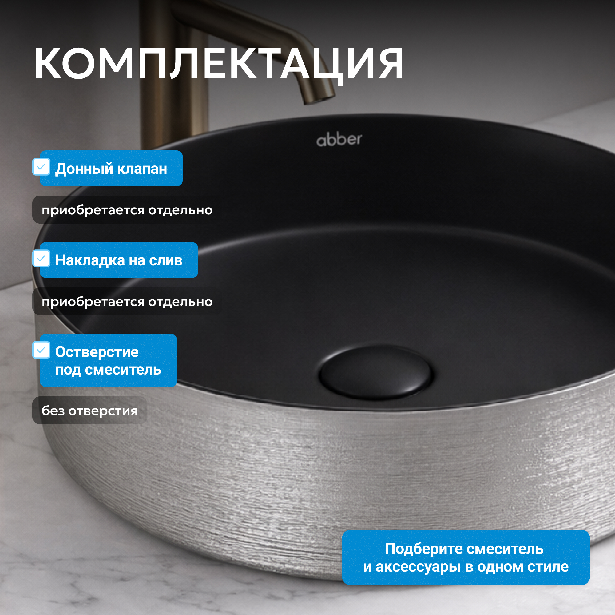 Раковина накладная ABBER Bequem AC2109BS черный матовый с серебром