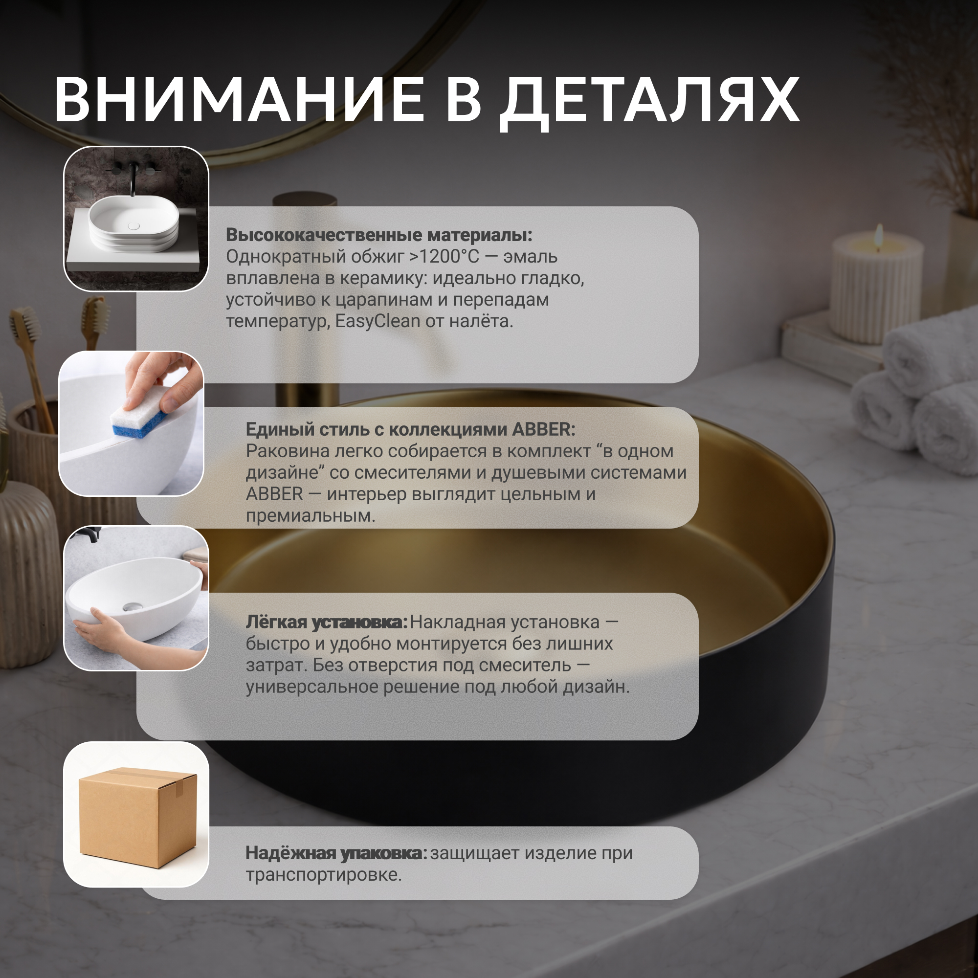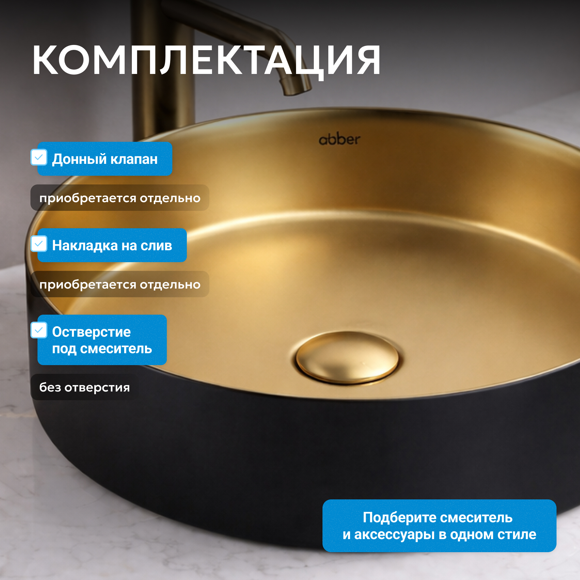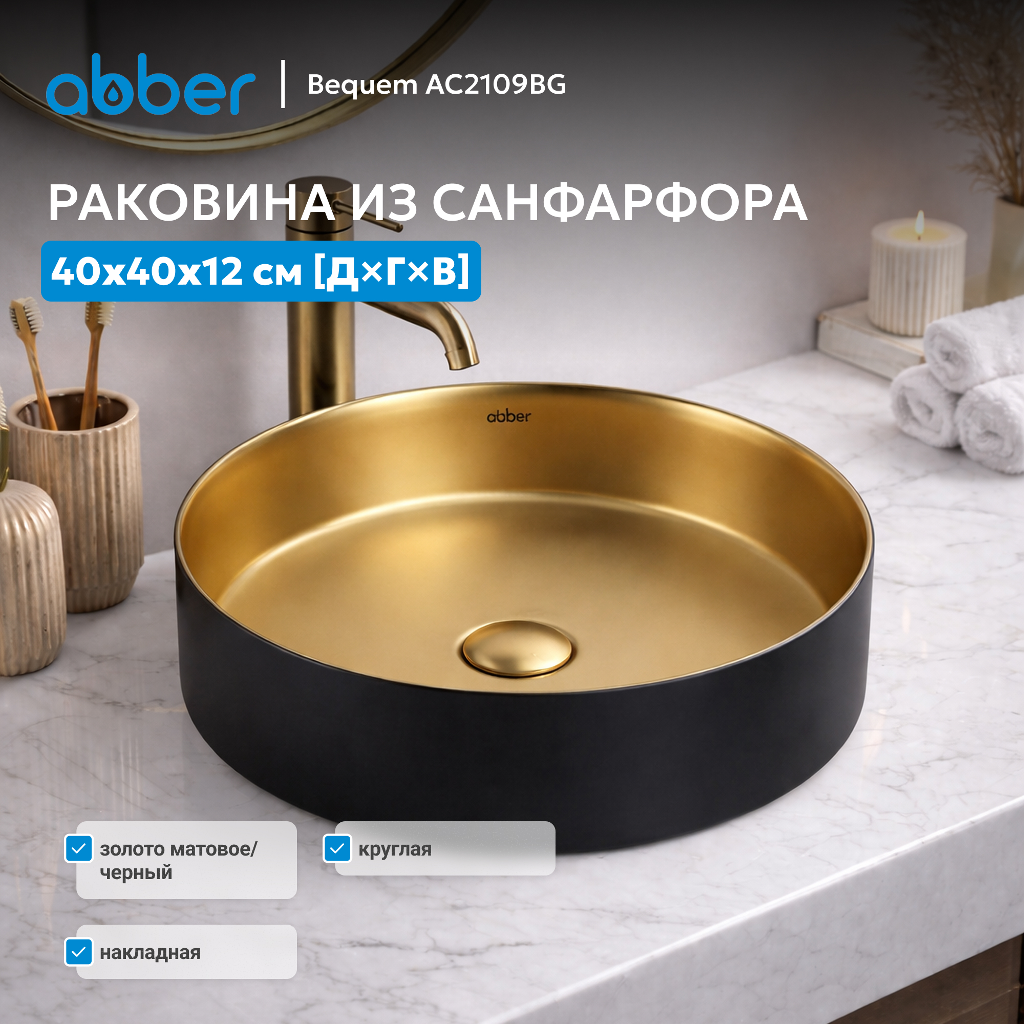Раковина накладная ABBER Bequem AC2109BG матовое золото с черным