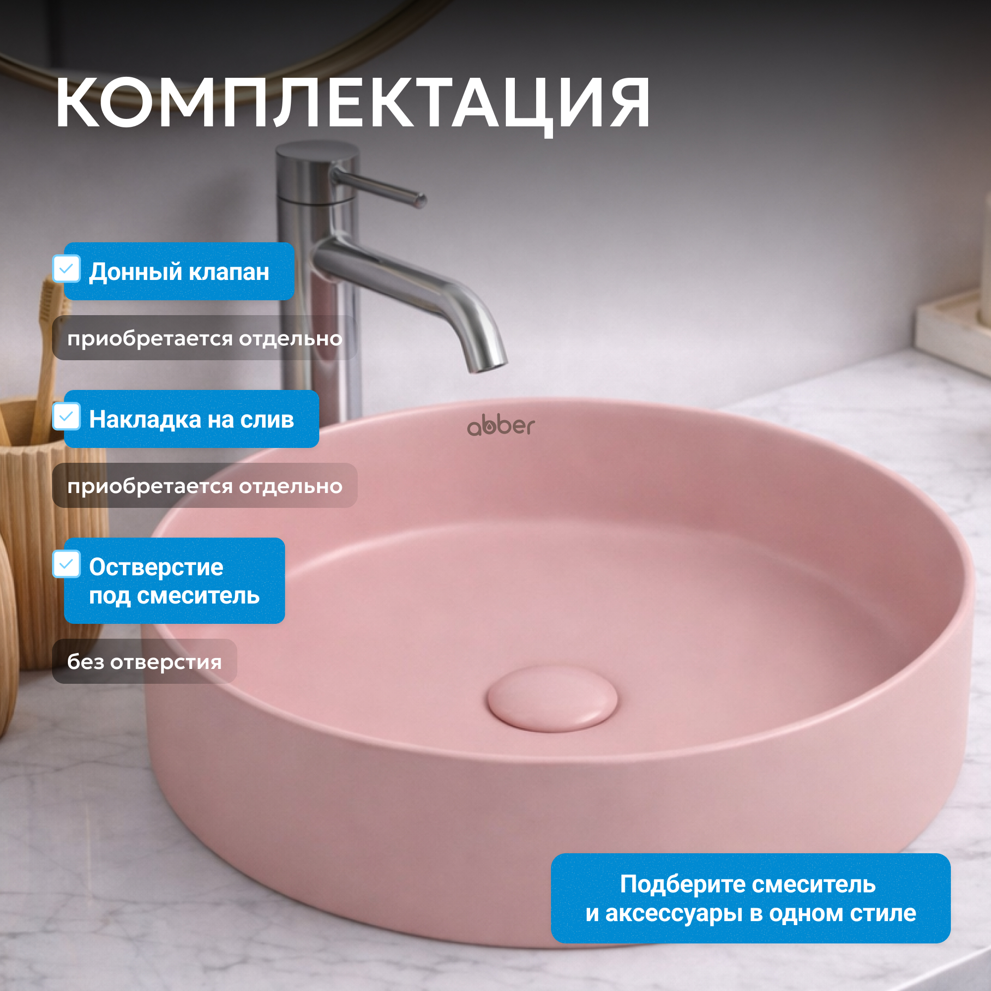 Раковина накладная ABBER Bequem AC2109MP розовая матовая