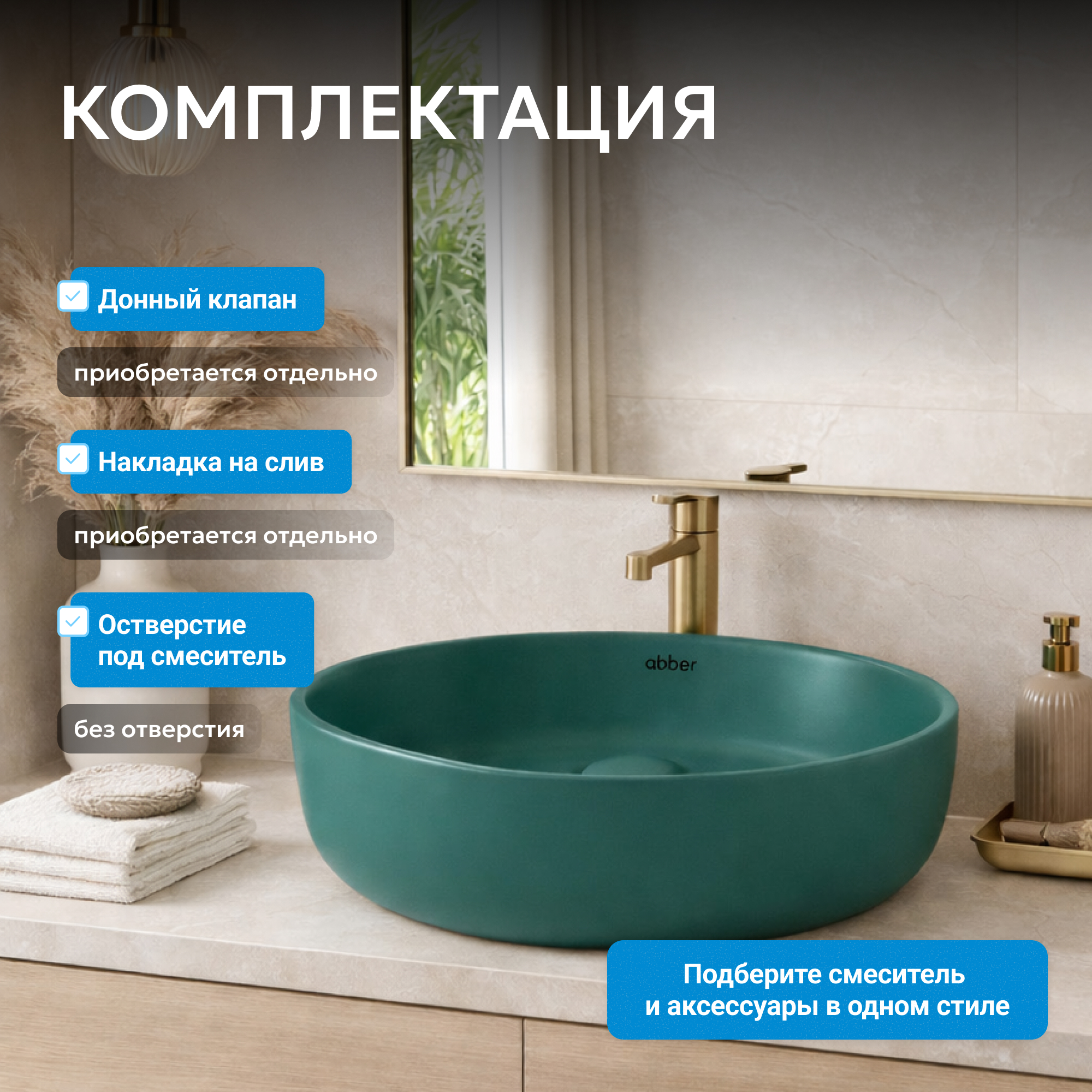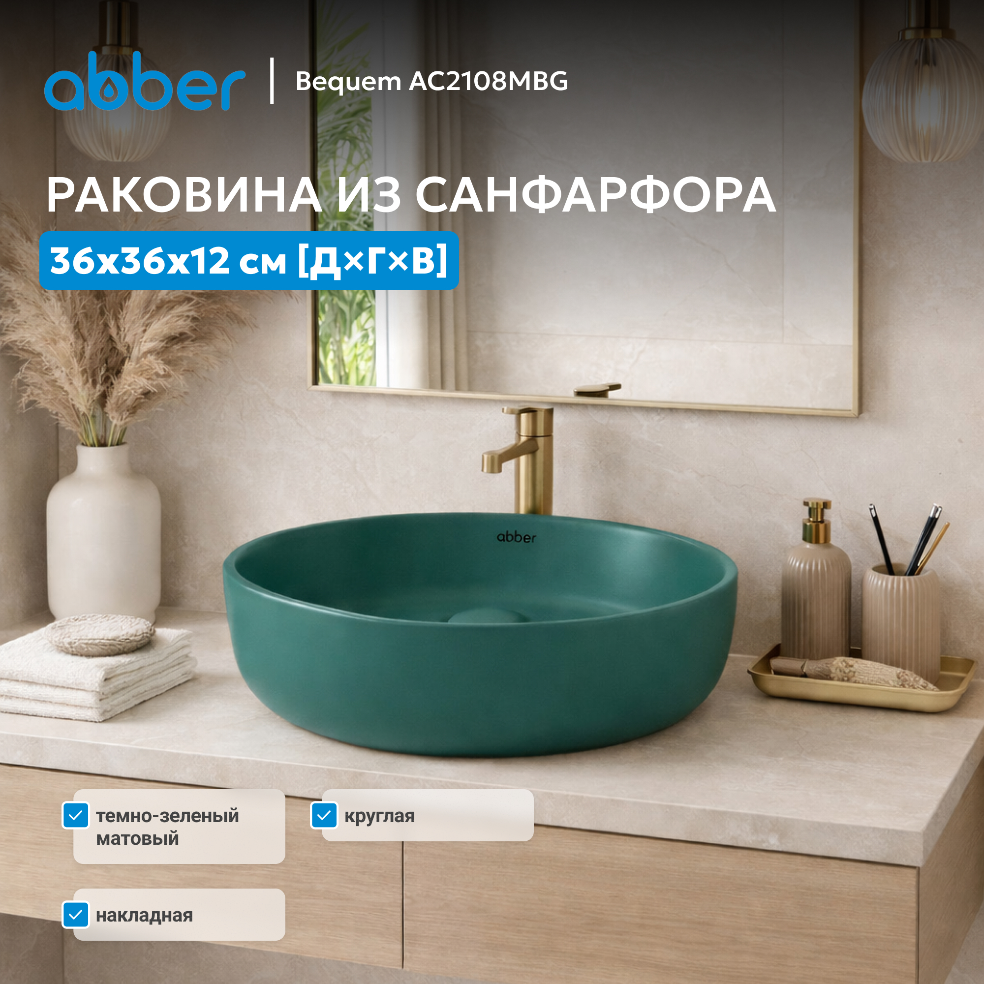 Раковина накладная ABBER Bequem AC2108MBG темно-зеленая матовая