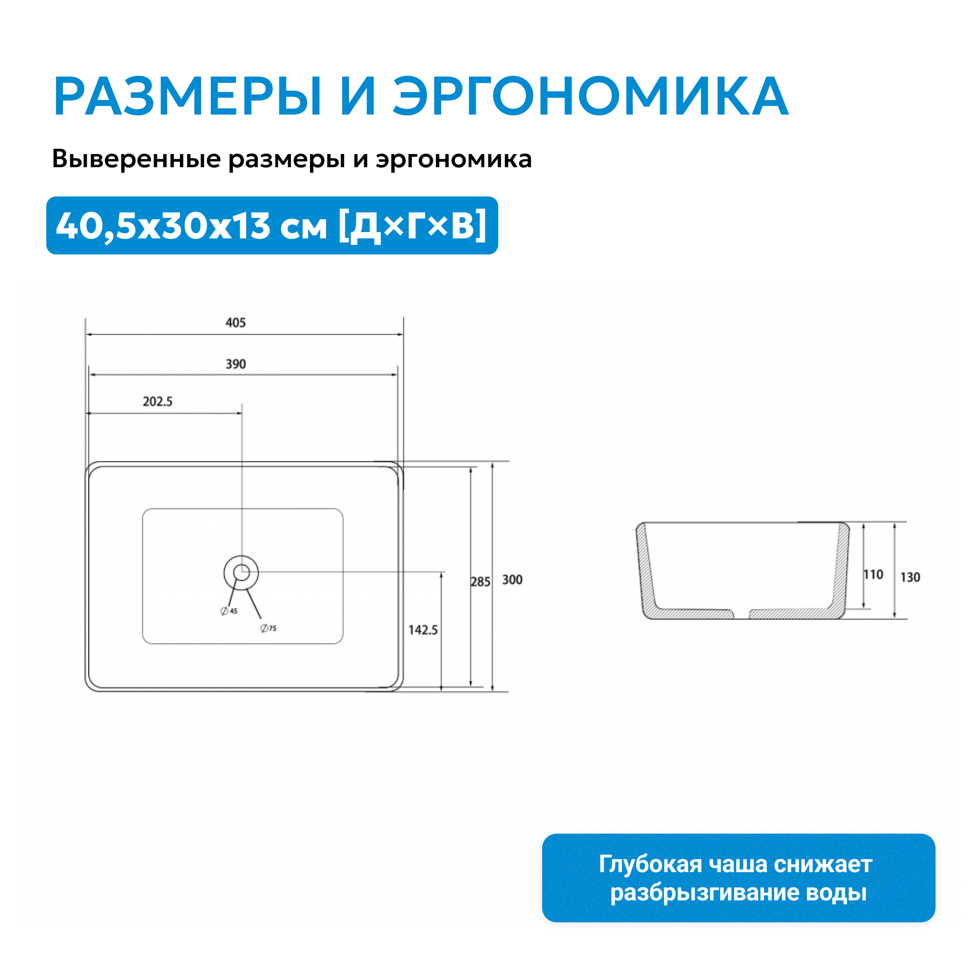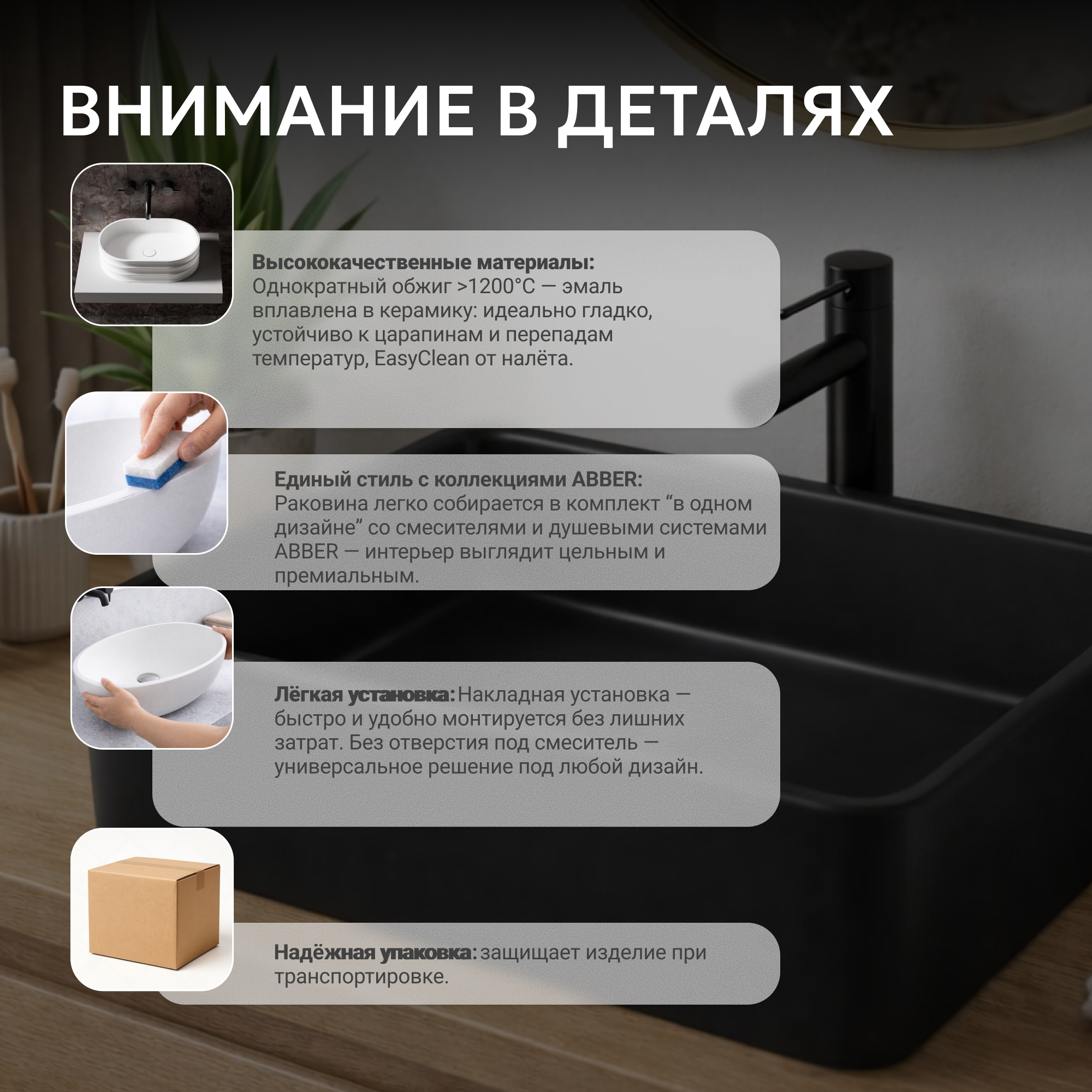 Раковина накладная ABBER Rechteck AC2213MB черная матовая