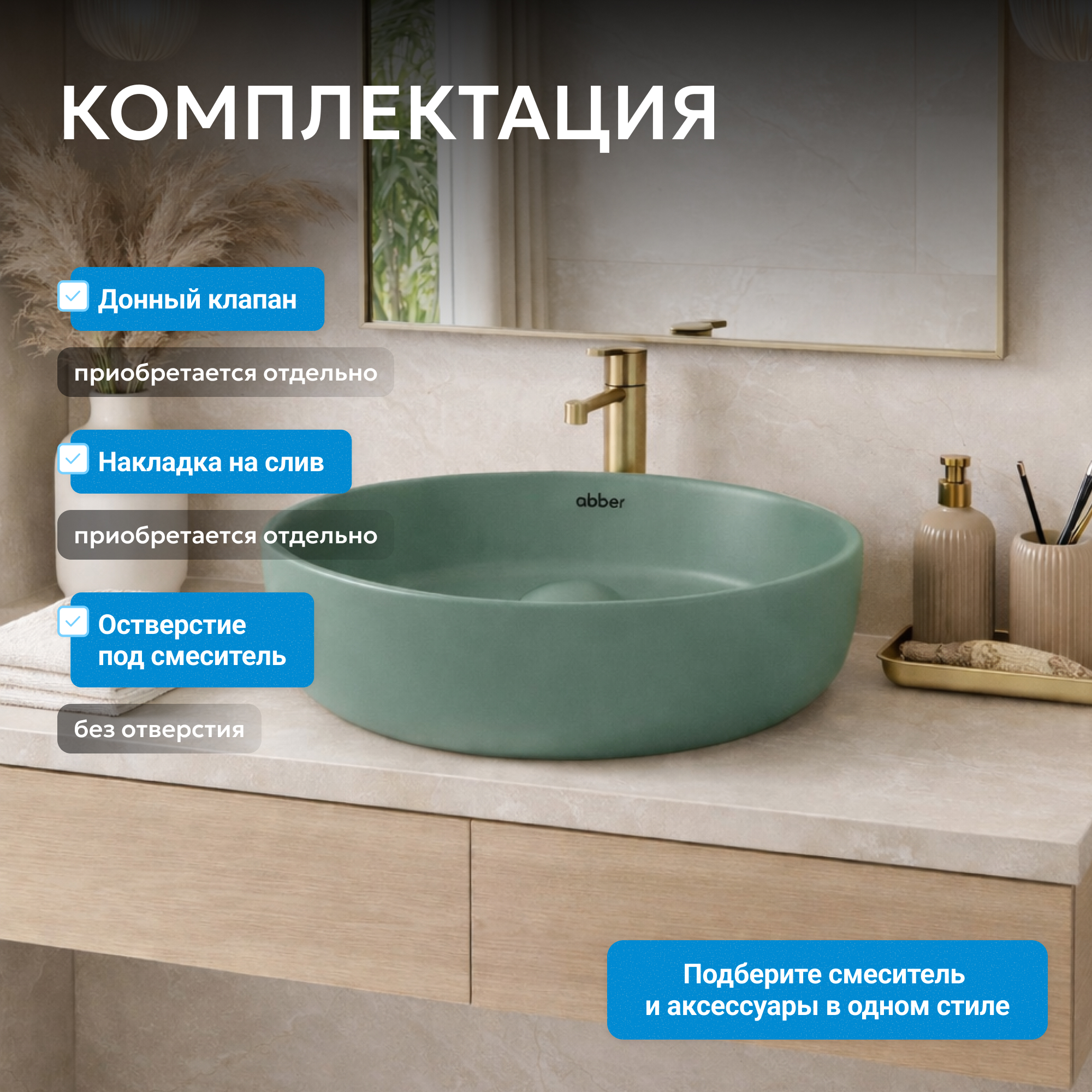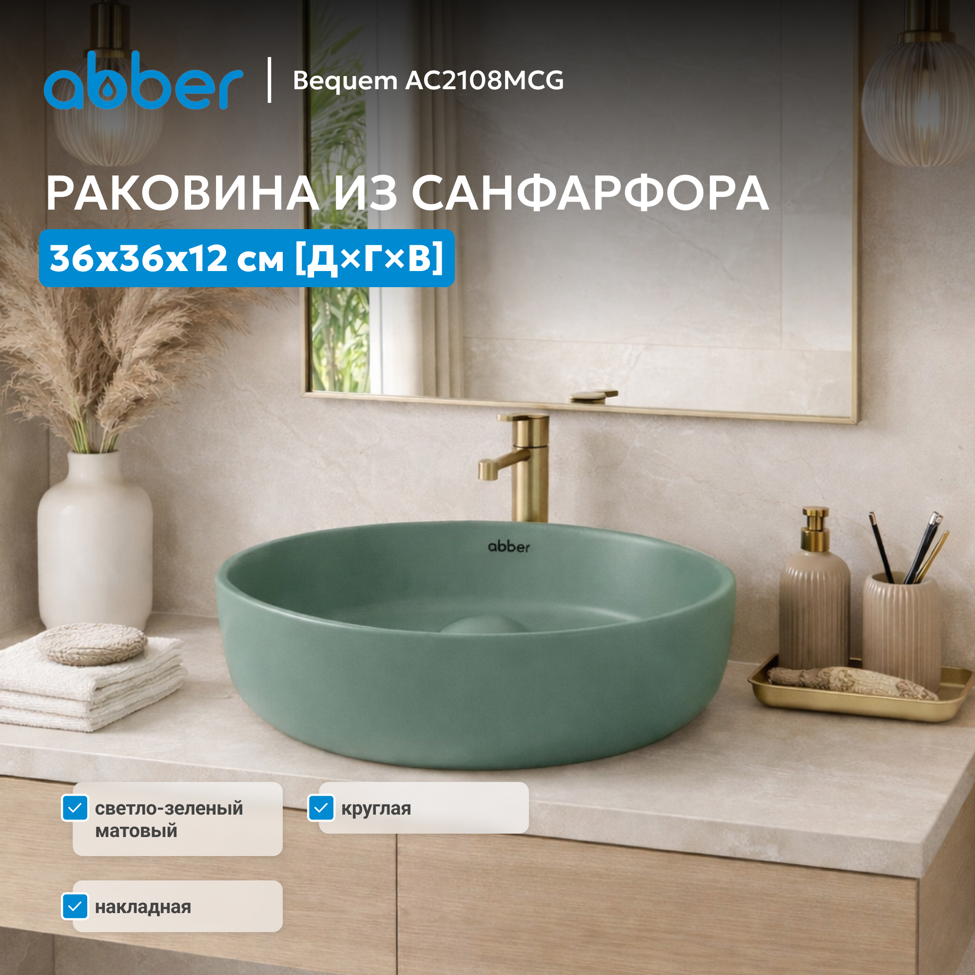 Раковина накладная ABBER Bequem AC2108MCG светло-зеленая матовая