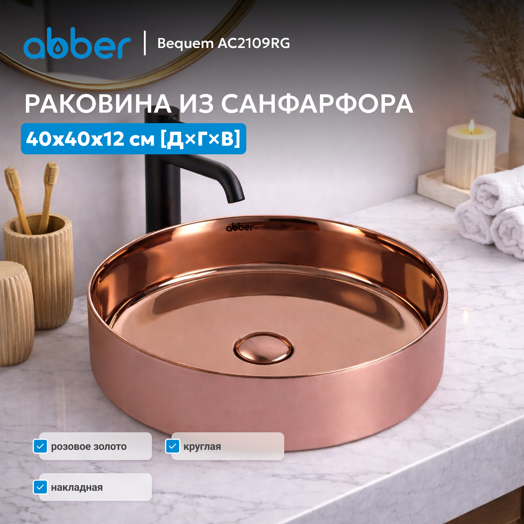 Раковина накладная ABBER Bequem AC2109RG розовое золото