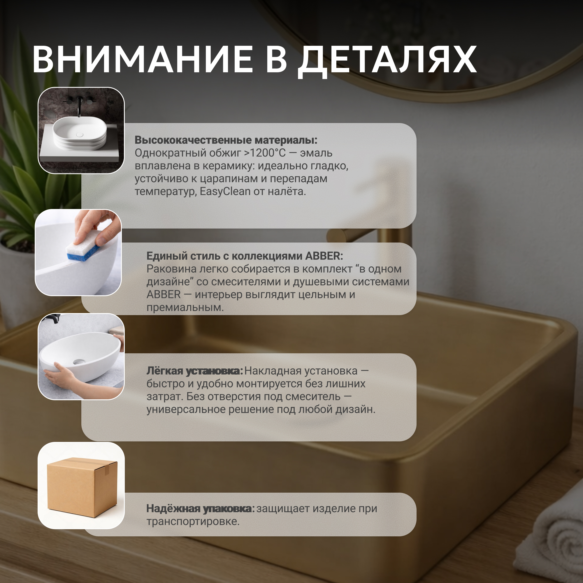 Раковина накладная ABBER Rechteck AC2213MMG золото матовое