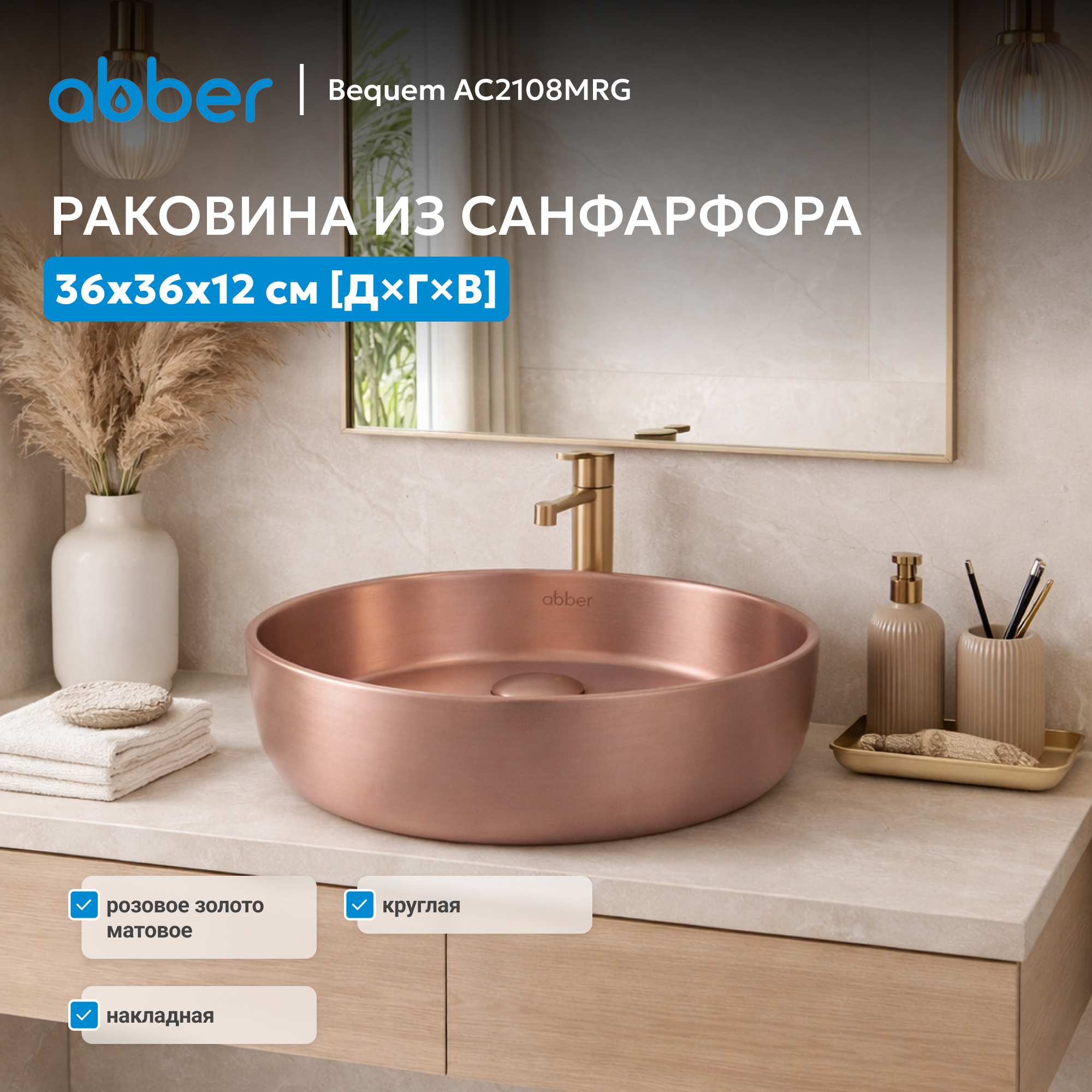 Раковина накладная ABBER Bequem AC2108MRG розовое золото матовое