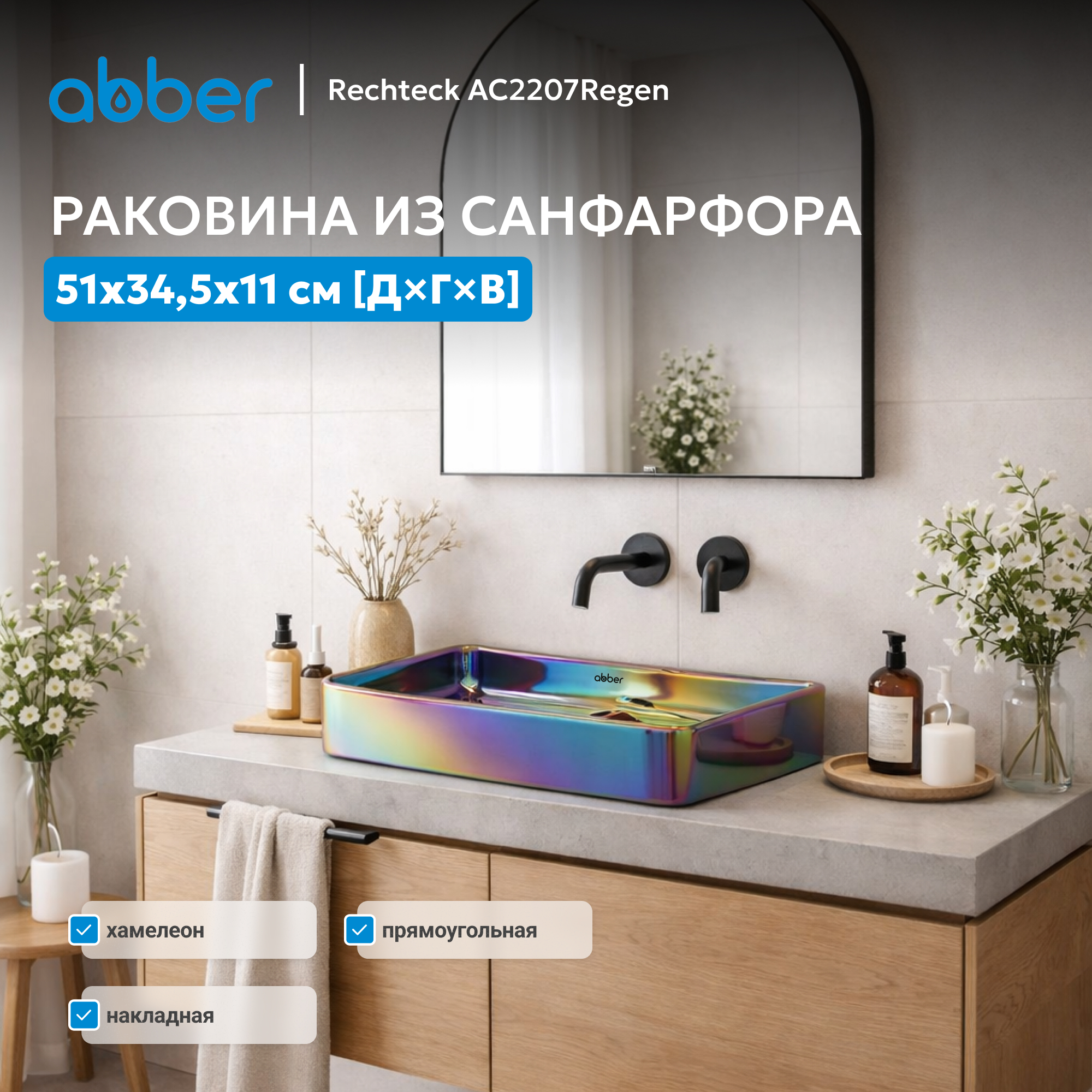 Раковина накладная ABBER Rechteck AC2207Regen хамелеон