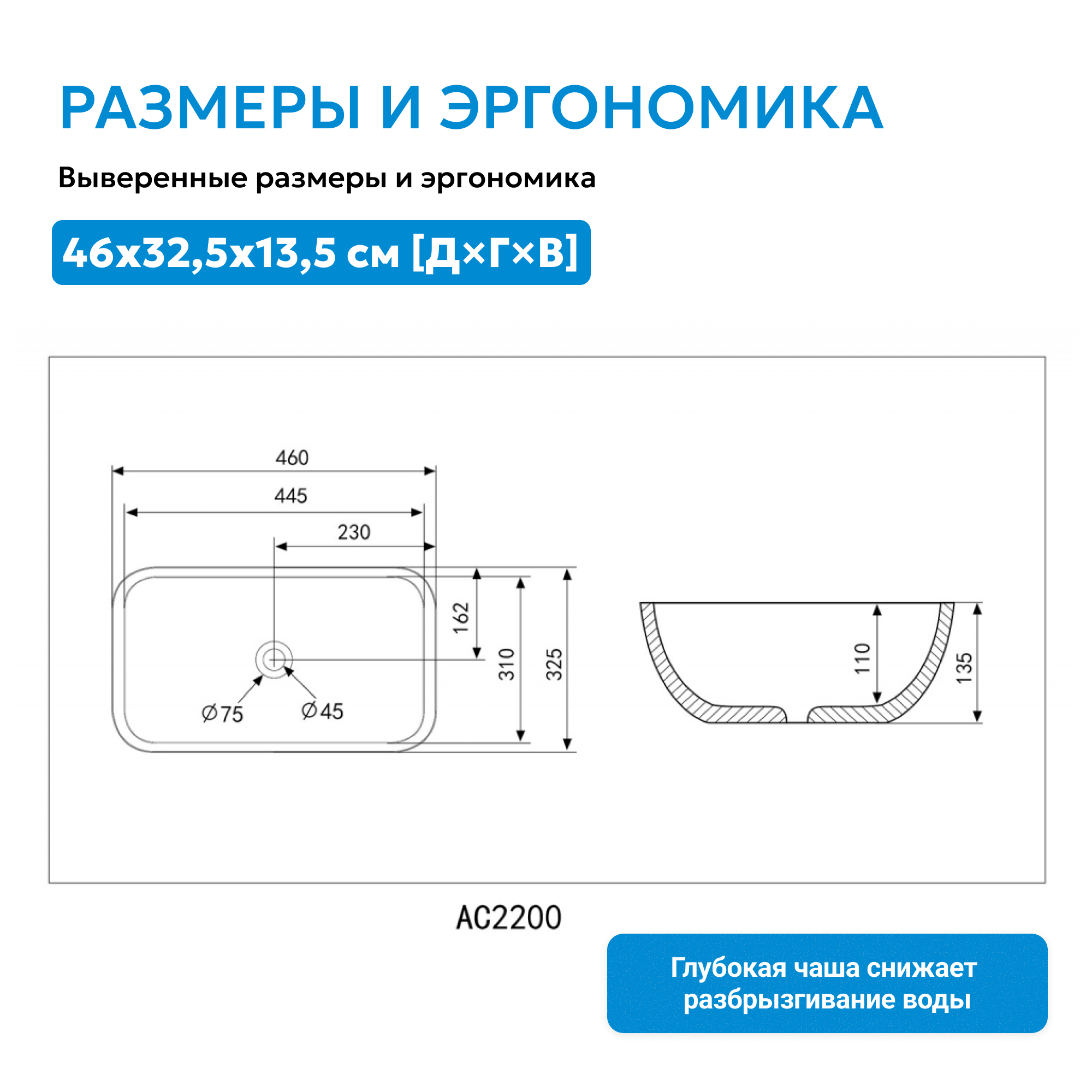 Раковина накладная ABBER Rechteck AC2200GS серебро