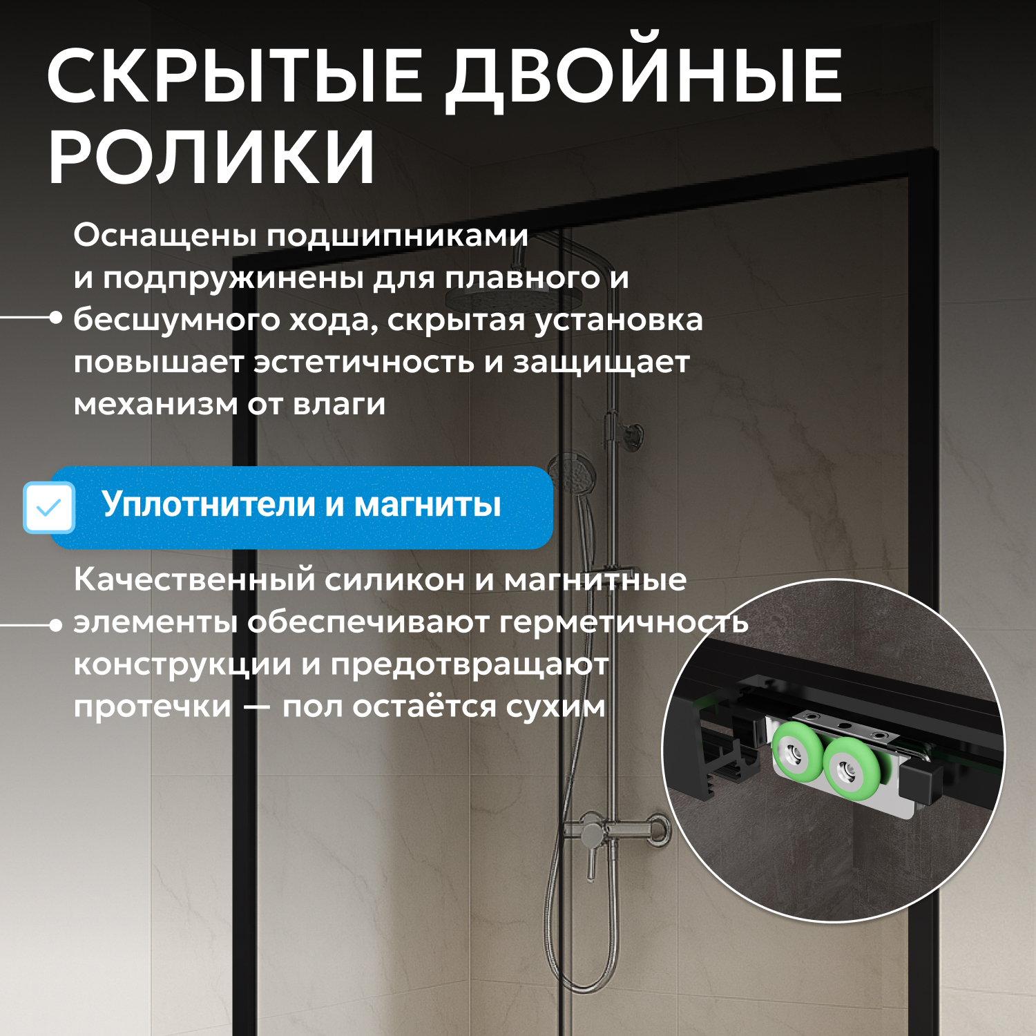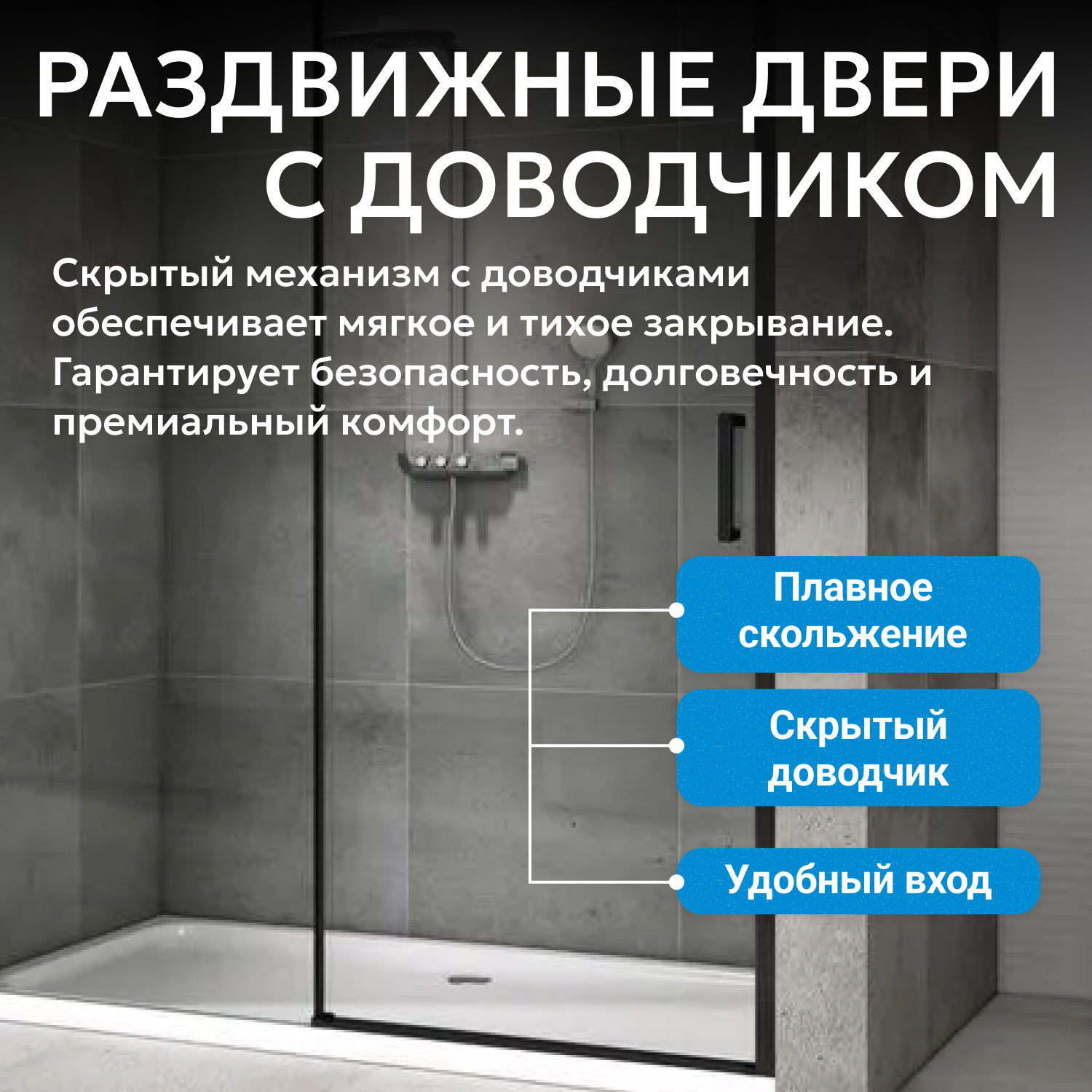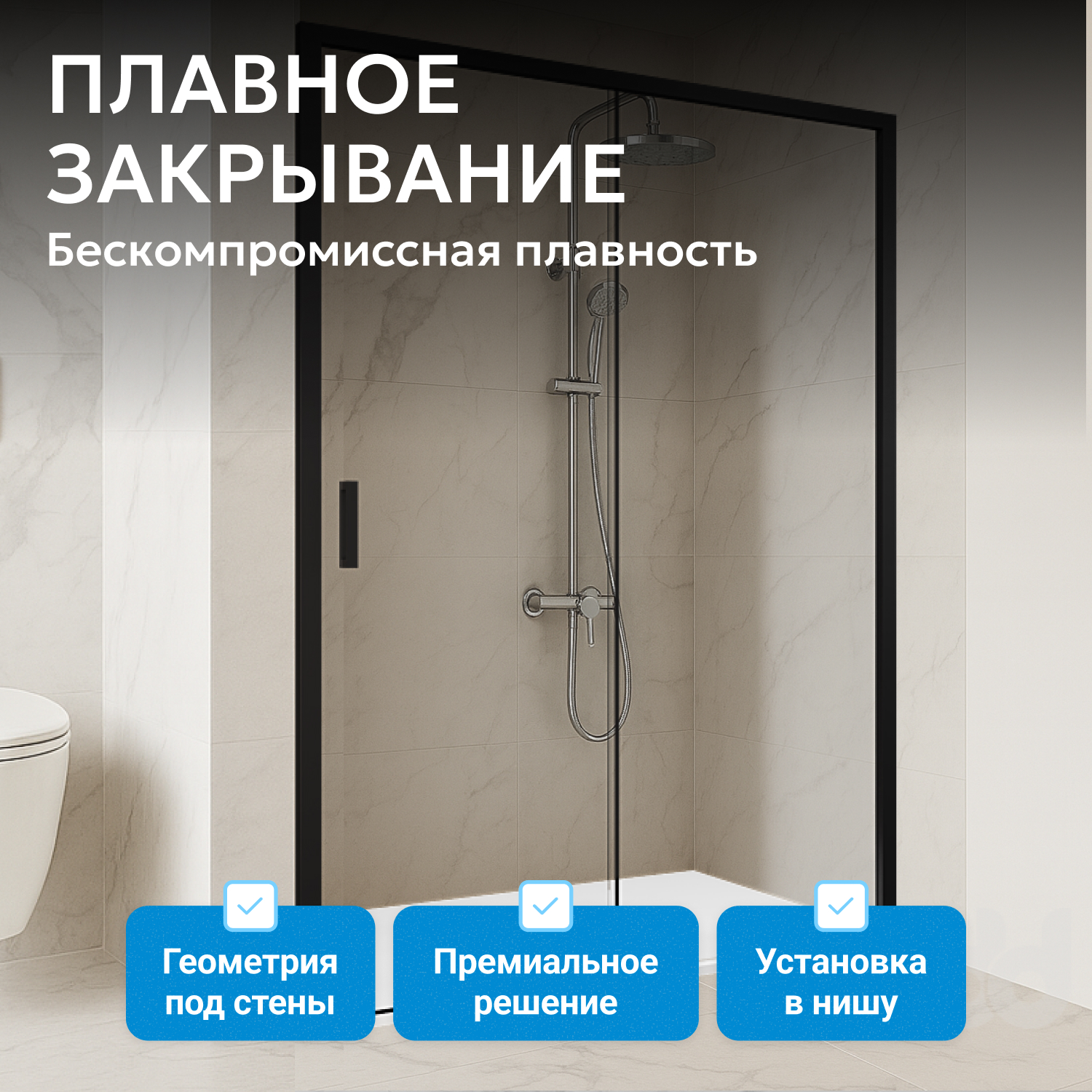 ширина пристенного профиля 60 мм, Soft-close доводчики позаботятся о плавной и бесшумной фиксации двери в крайних положениях
