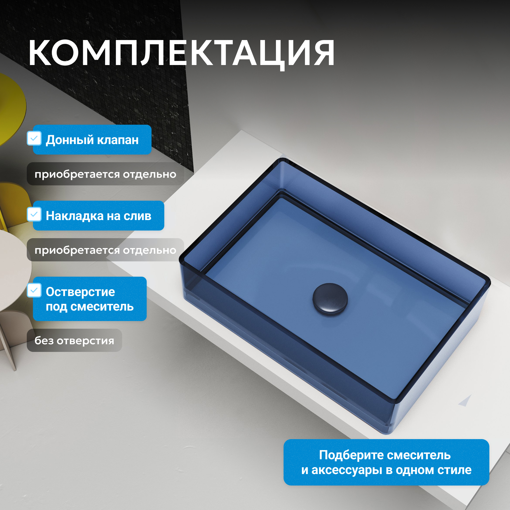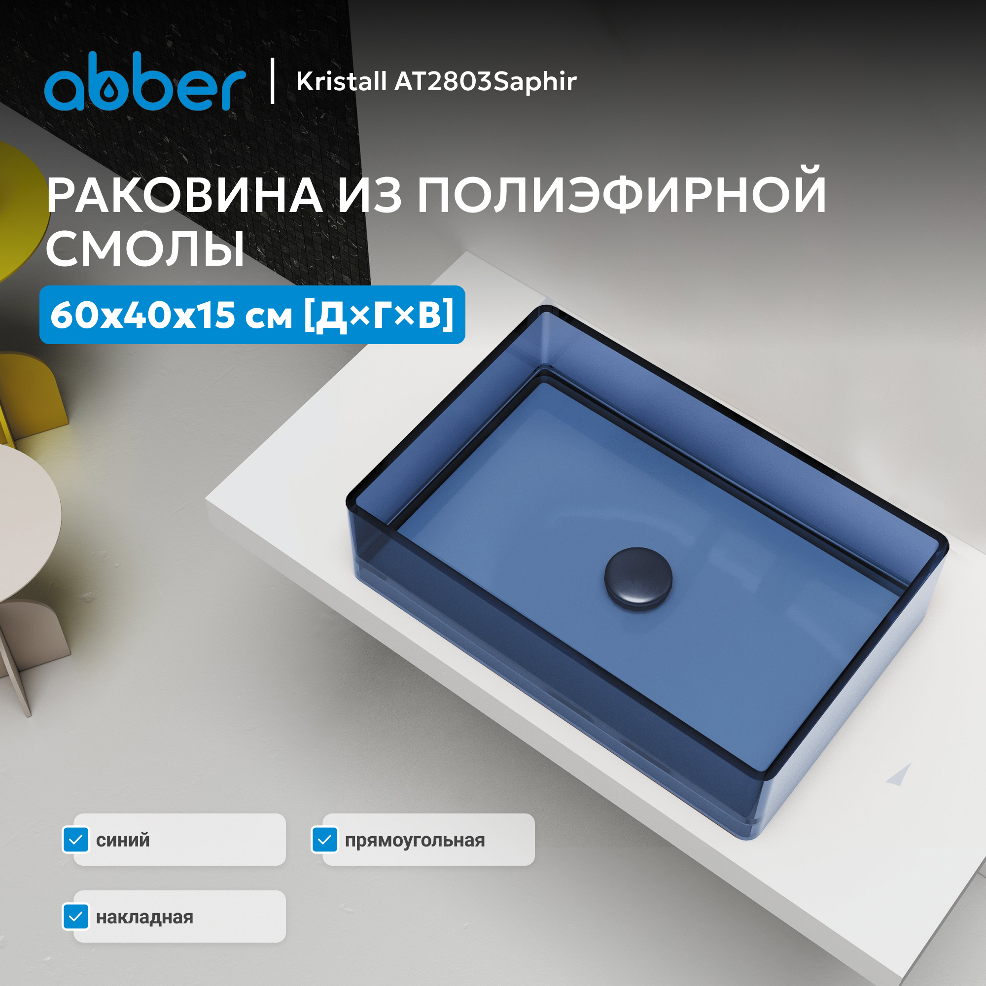 Раковина накладная прозрачная ABBER Kristall AT2803Saphir синяя