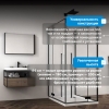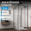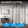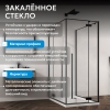 Прозрачное закалённое стекло толщиной 8 мм обеспечивает устойчивость к механическим нагрузкам и визуально расширяет пространство. Черный профиль придает интерьеру современный акцент и сочетается с сантехникой в аналогичном оформлении.