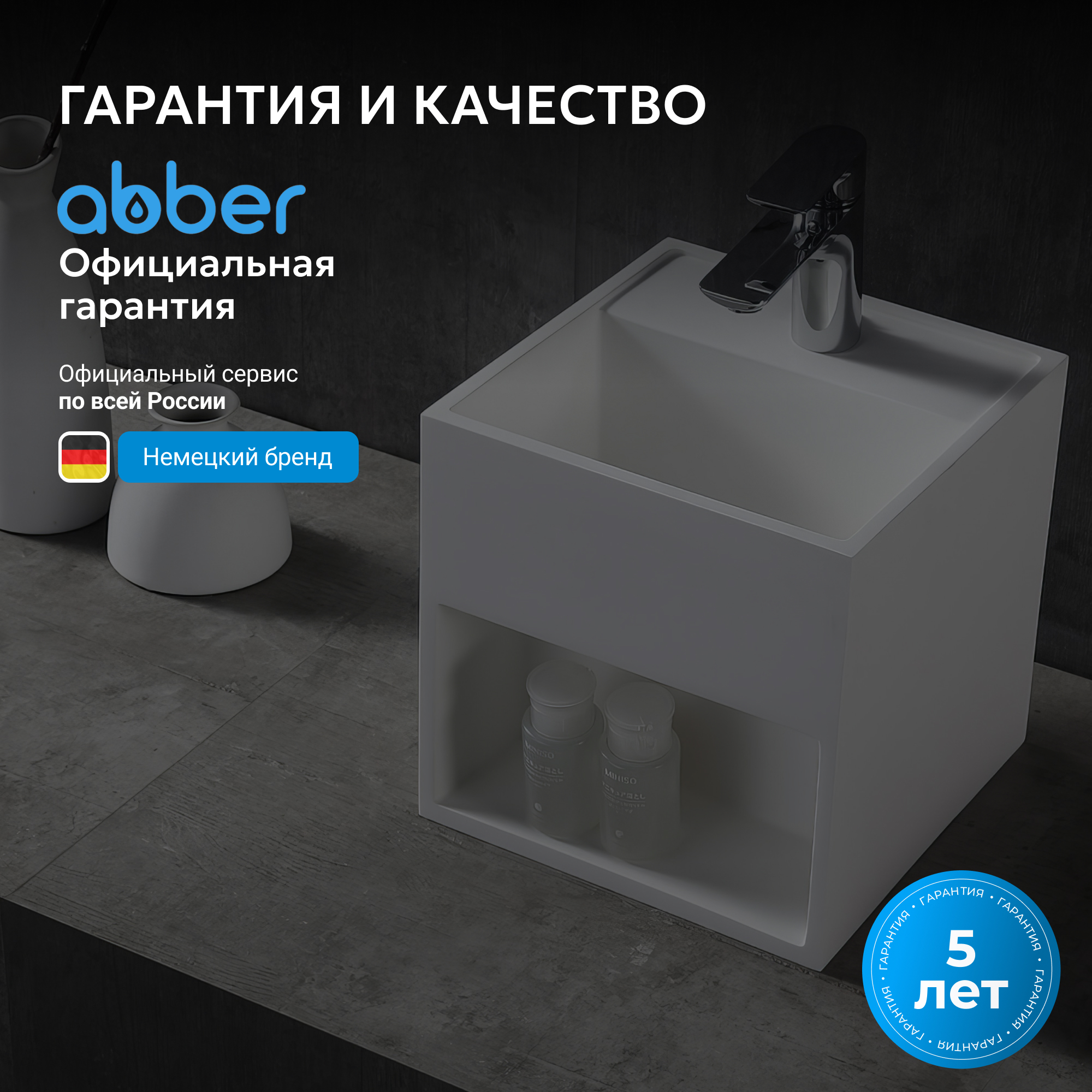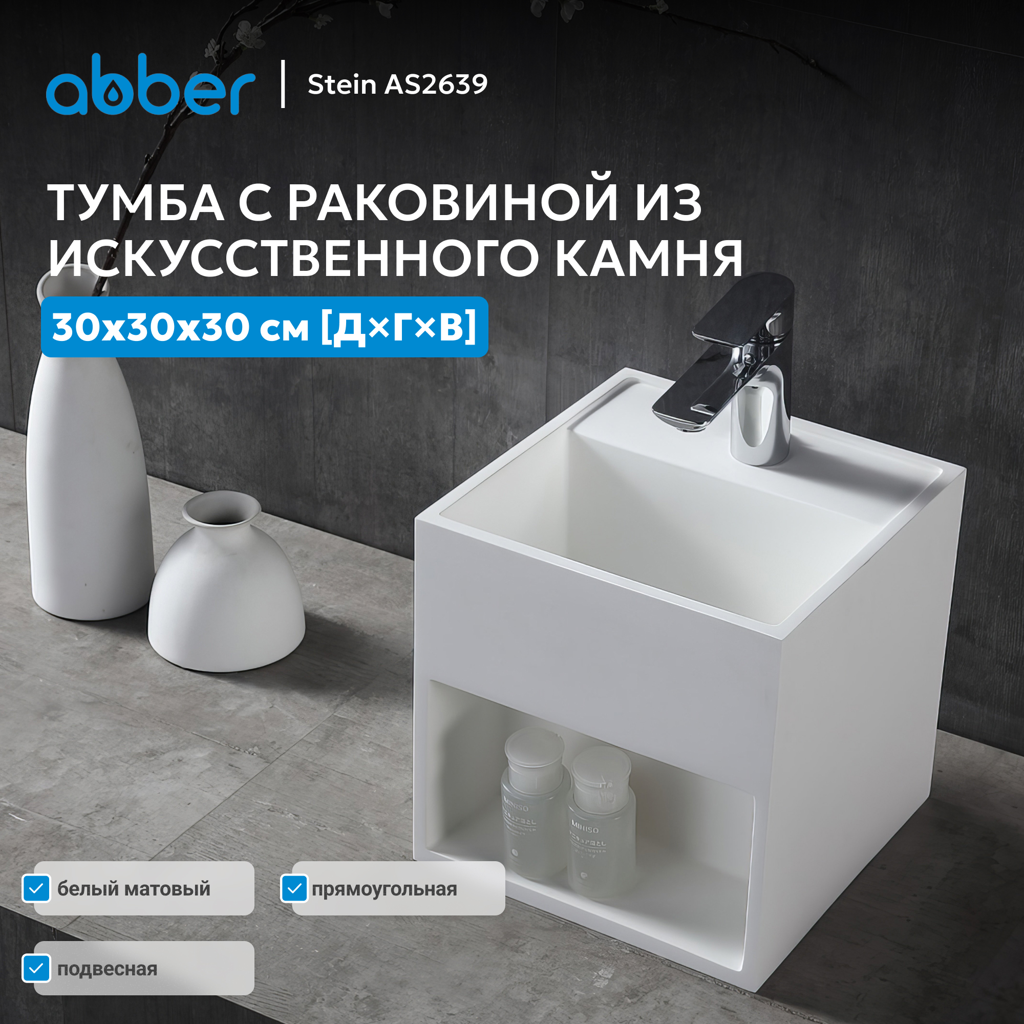 Тумба с раковиной ABBER Stein AS2639 подвесная, белая матовая