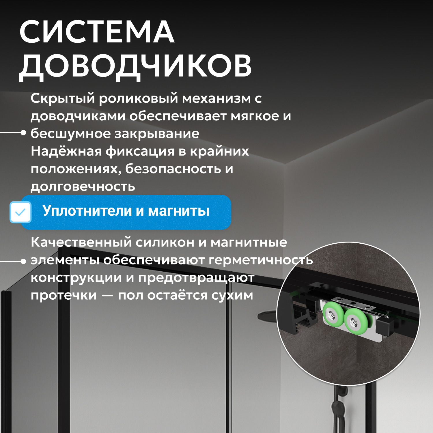- Soft-close доводчики позаботятся о плавной и бесшумной фиксации двери в крайних положениях