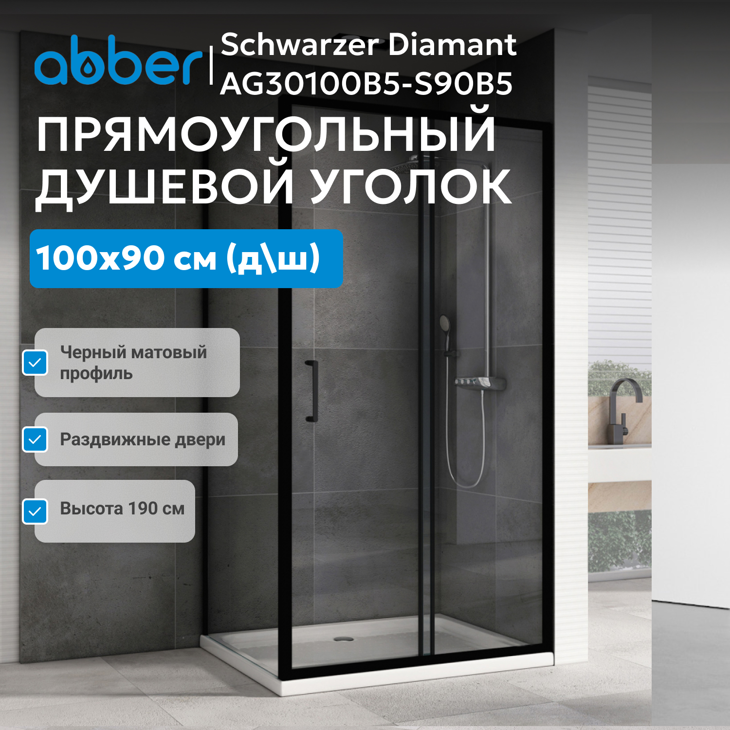 Душевой уголок ABBER Schwarzer Diamant AG30100B5-S90B5