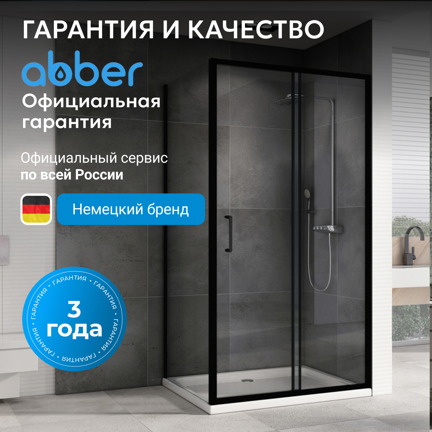 ABBER — российский бренд с сервисными центрами в Москве и Санкт-Петербурге и поддержкой по всей России. Продукция производится с использованием технологий «немецкого качества» и сопровождается официальной гарантией 3 года. Душевой уголок поставляется без поддона, его выбор осуществляется отдельно.