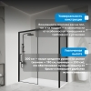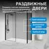 Раздвижная дверь с доводчиками Soft-close обеспечивает плавное и тихое открытие, предотвращая износ механизма и увеличивая срок службы. Вход шириной 727 мм обеспечивает удобство использования. Пристенный профиль шириной 60 мм гарантирует стабильный монтаж и надёжное соединение со стеной. Высота уголка 200 см предотвращает выплескивание воды за пределы зоны мытья.