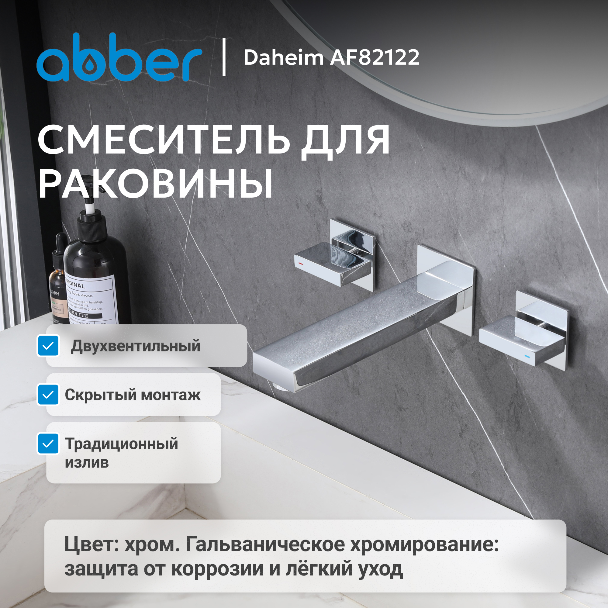 Смеситель ABBER Daheim AF82122 для раковины скрытого монтажа, хром