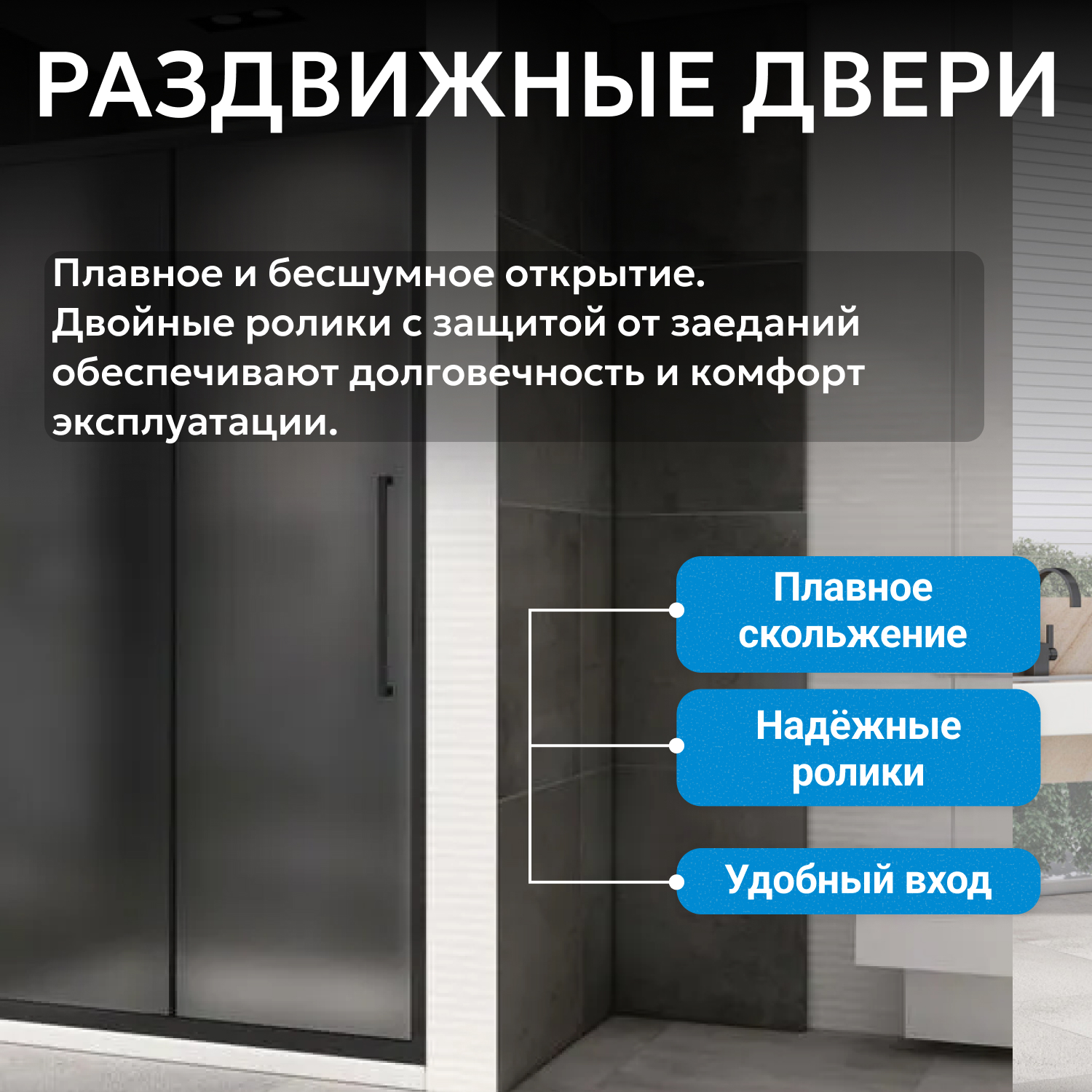 Душевые двери ABBER изготавливаются из алюминиевого профиля, окрашенного порошковой краской и закалённого, ударопрочного стекла. Также стеклянные душевые двери обладают рядом преимуществ: они легко моются, надежны и долговечны в эксплуатации.