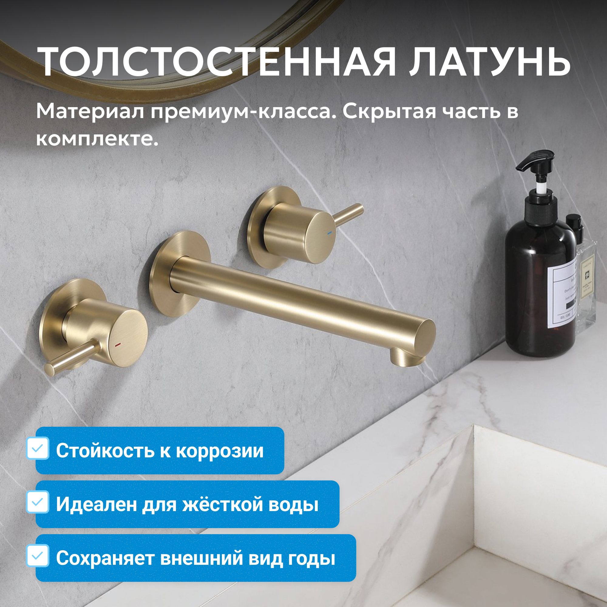 Корпус всех смесителей ABBER изготавливается из латуни техникой цельной отливки при атмосферном давлении, что обеспечивает высокую прочность изделия и устойчивость к перепадам давления.