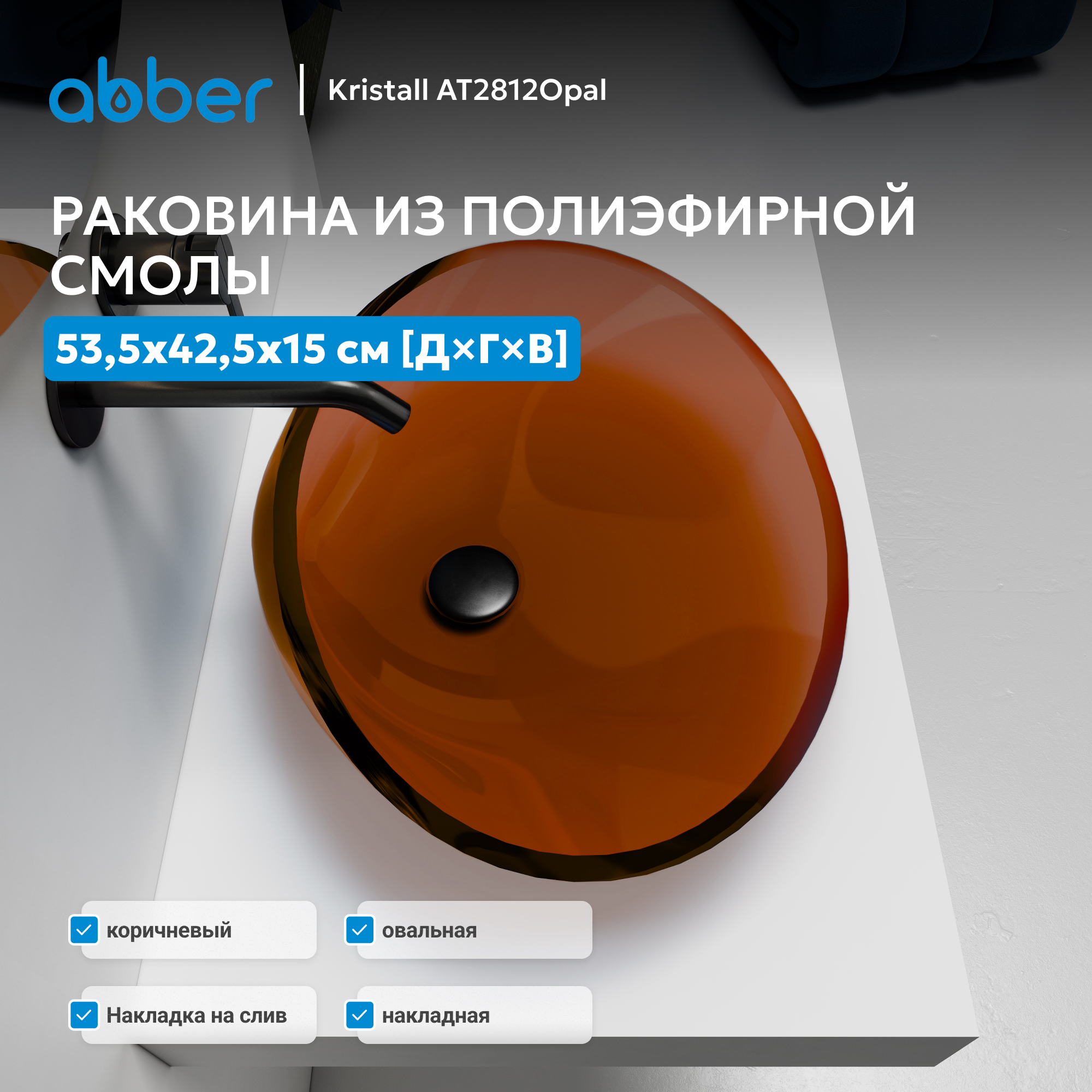 Раковина накладная прозрачная ABBER Kristall AT2812Opal коричневая