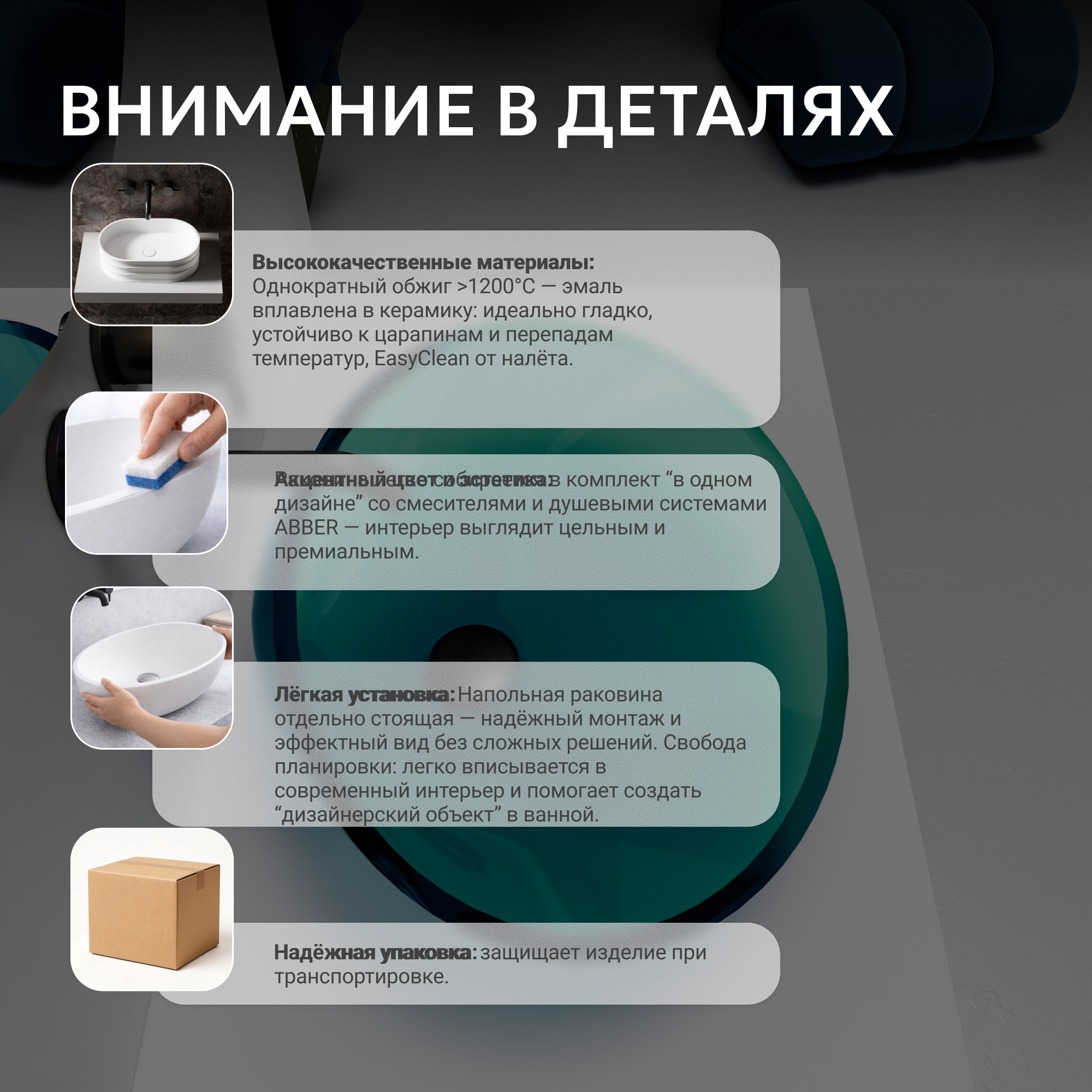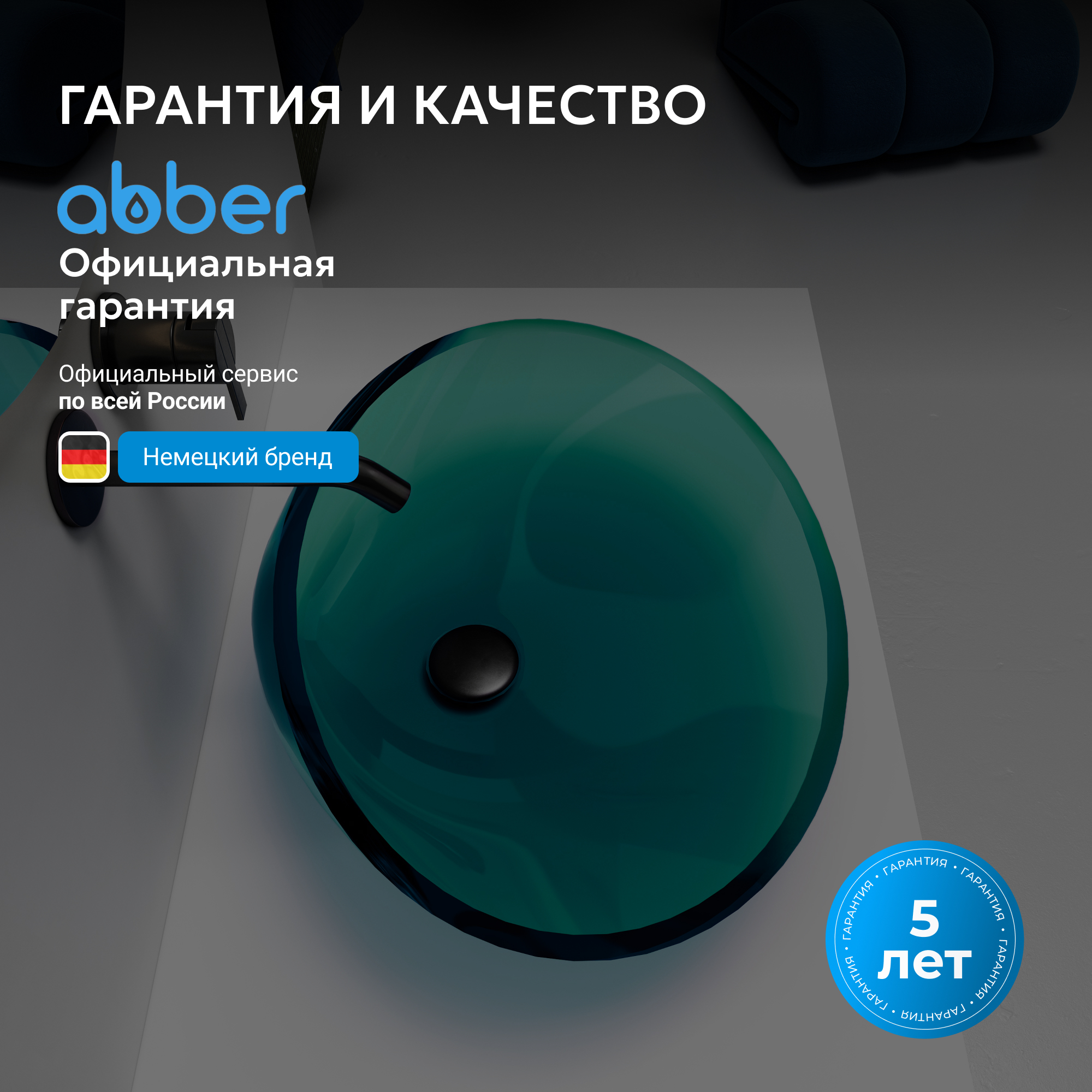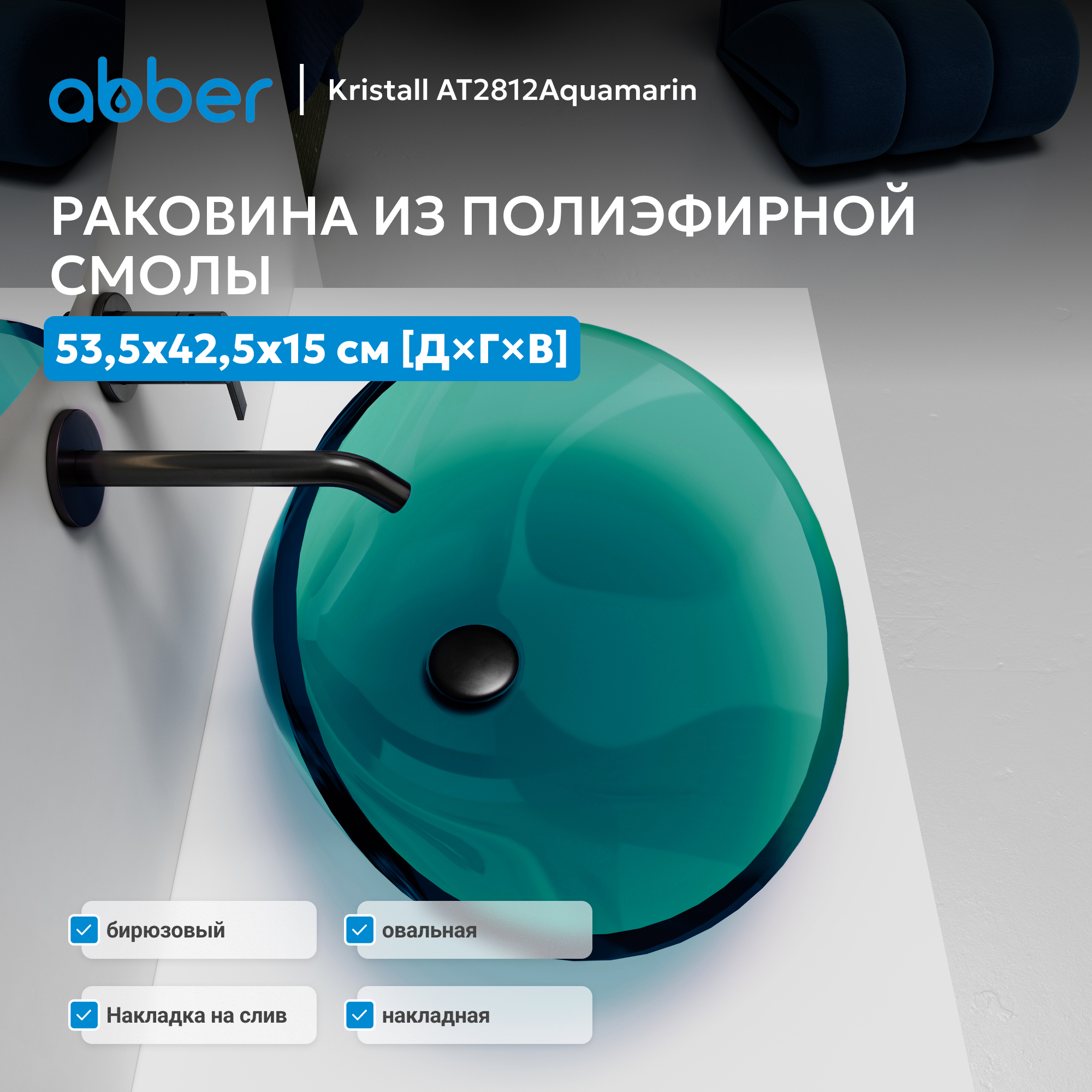 Раковина накладная прозрачная ABBER Kristall AT2812Aquamarin бирюзовая
