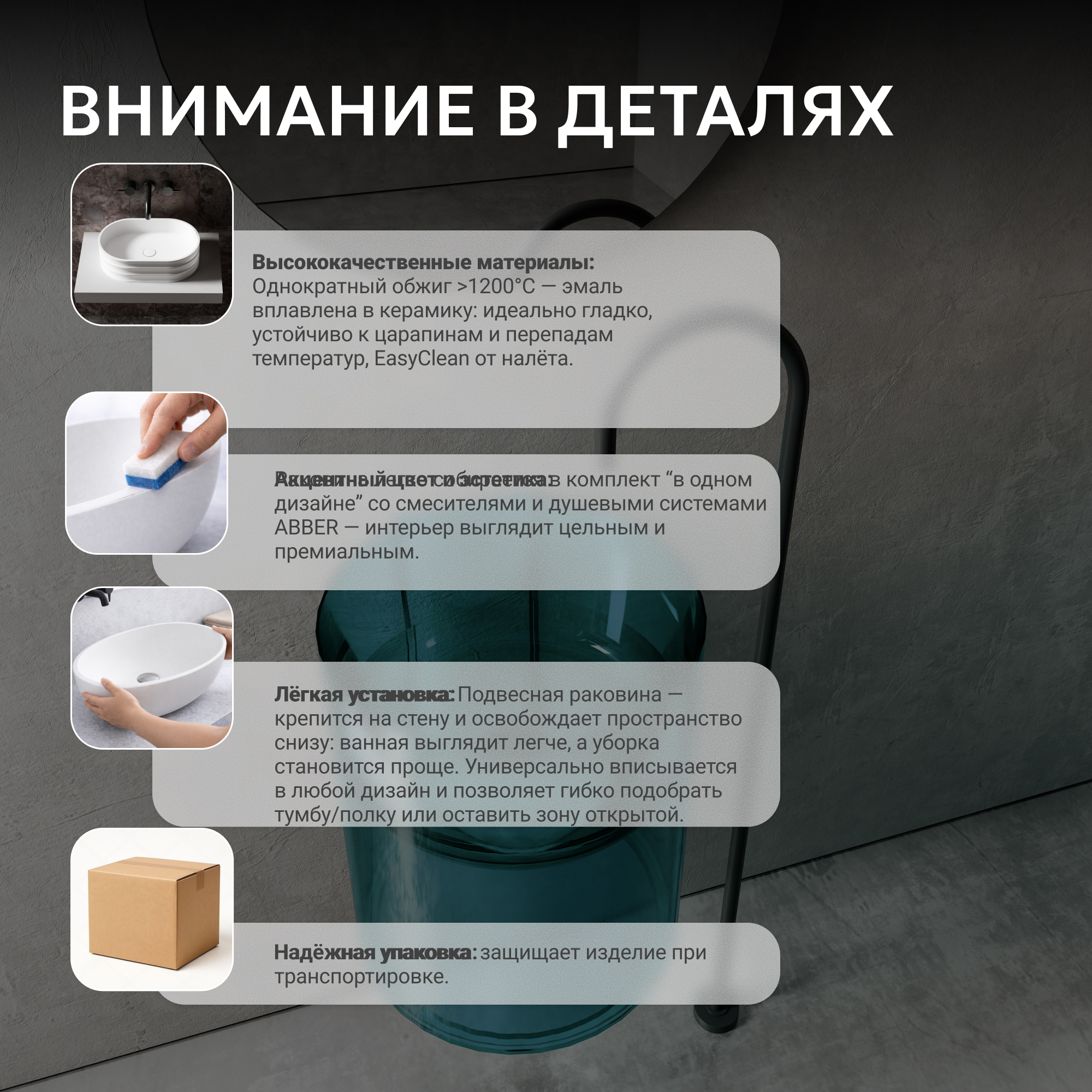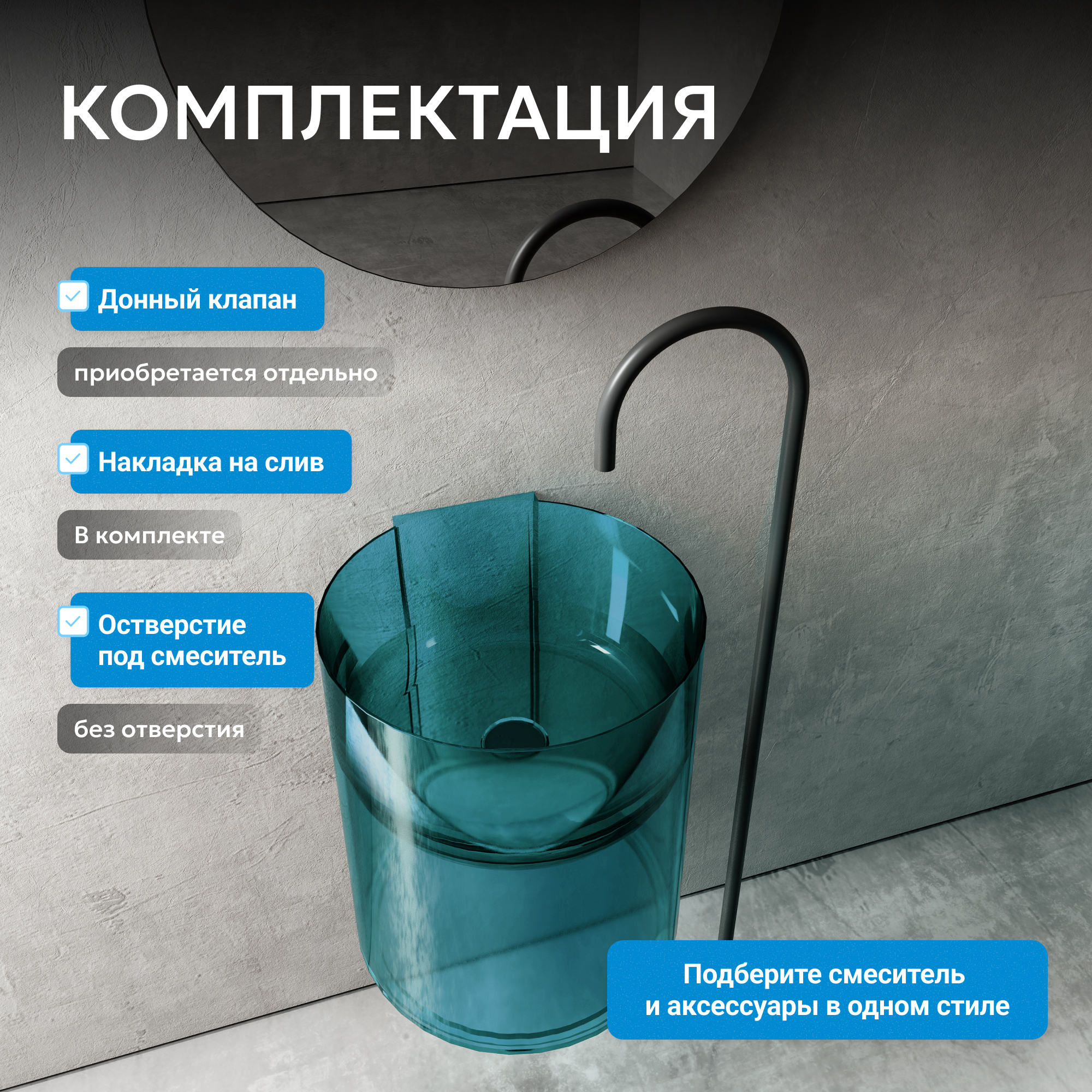 Раковина подвесная прозрачная ABBER Kristall AT2704Aquamarin бирюзовая