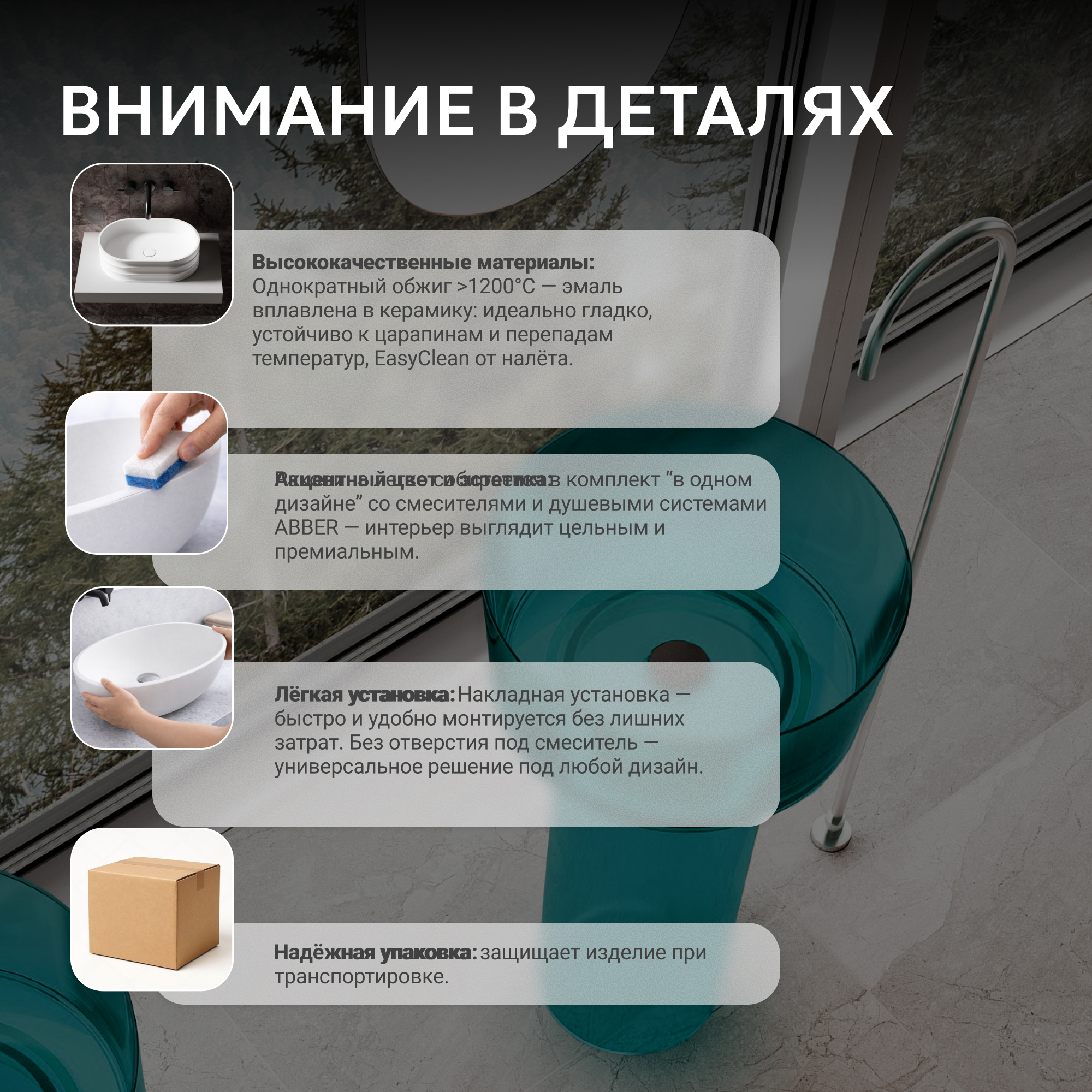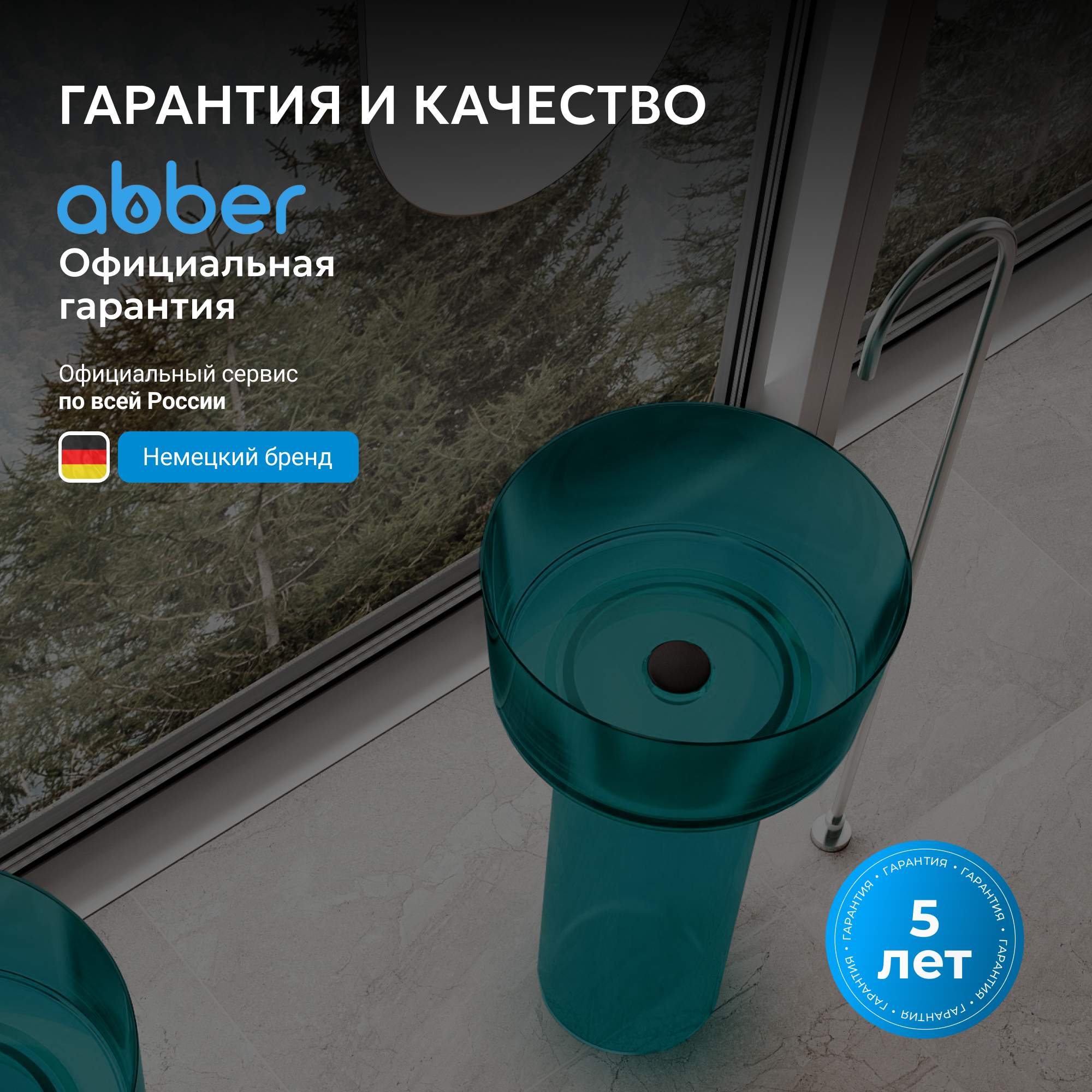 Раковина отдельностоящая прозрачная ABBER Kristall AT2702Aquamarin-H бирюзовая