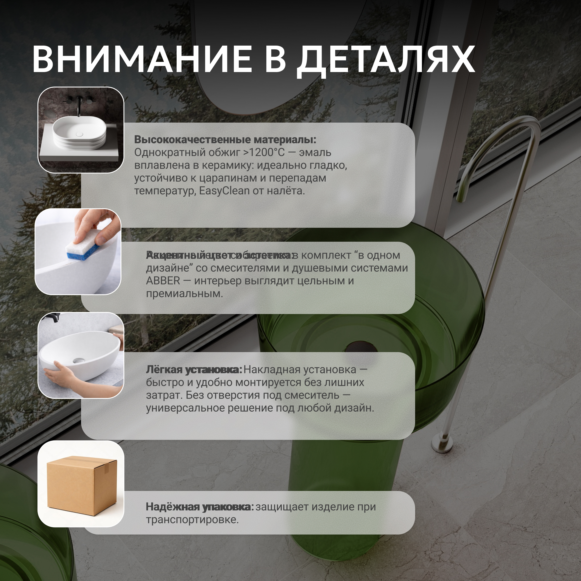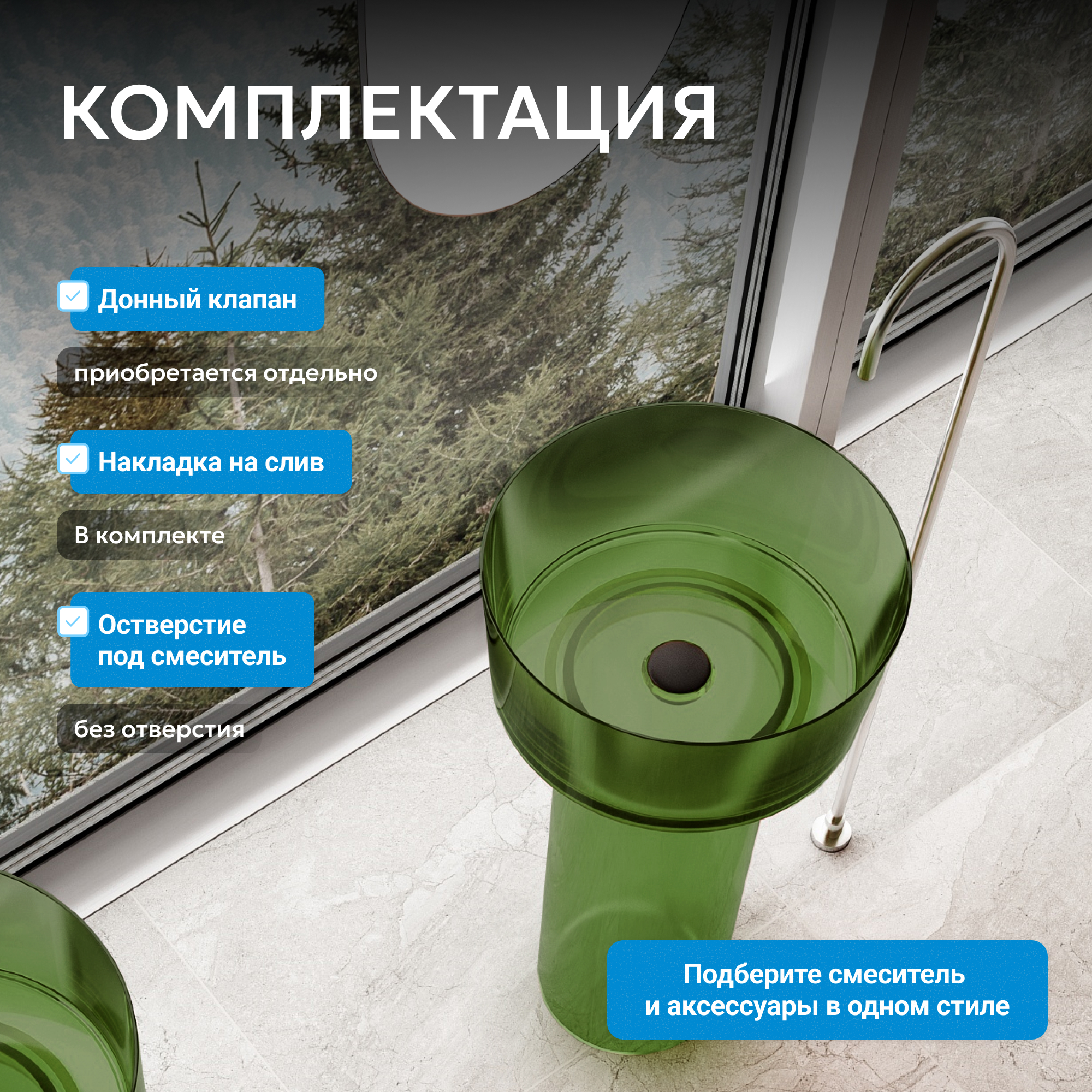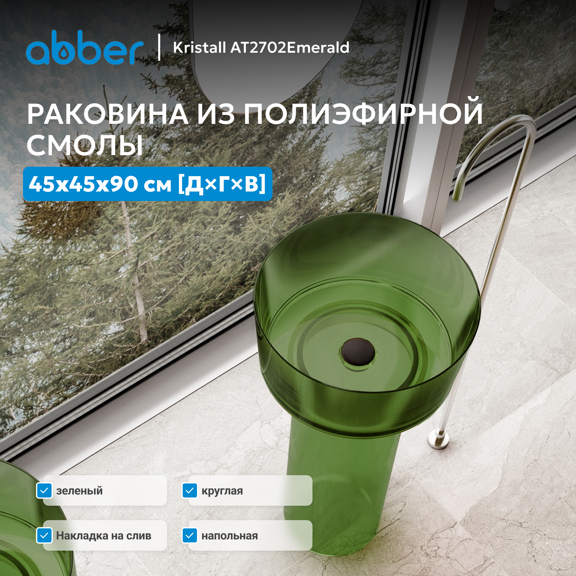 Раковина отдельностоящая прозрачная ABBER Kristall AT2702Emerald зеленая