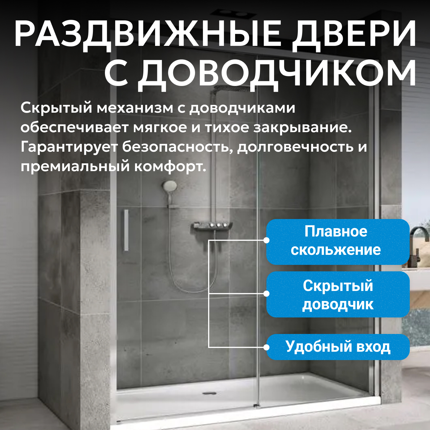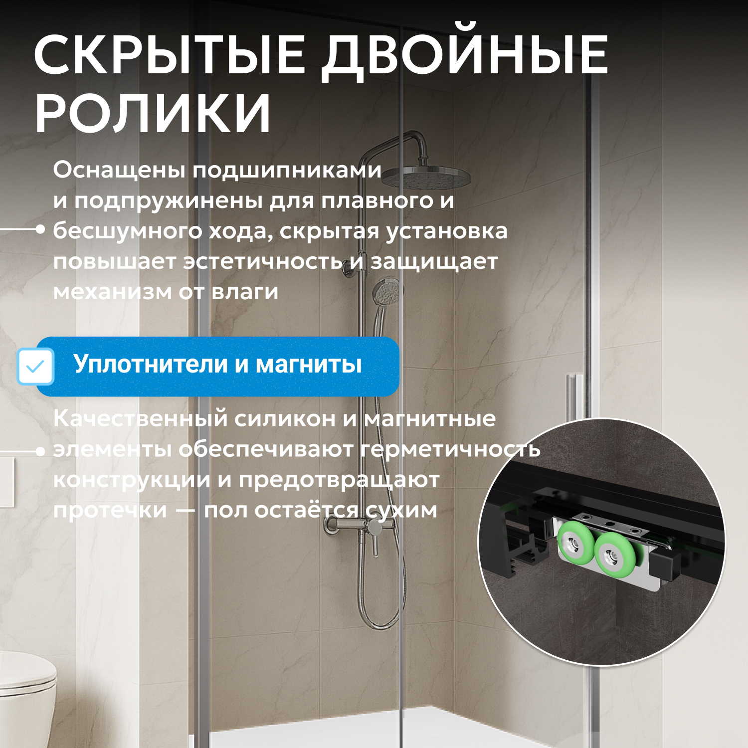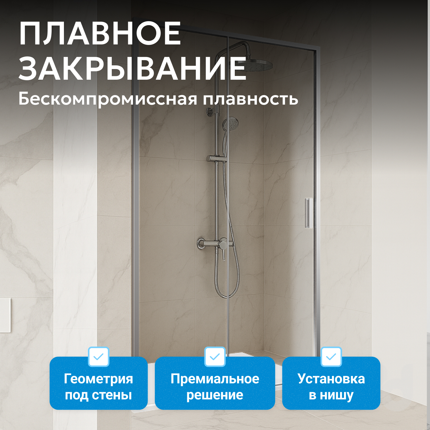 ширина пристенного профиля 60 мм, Soft-close доводчики позаботятся о плавной и бесшумной фиксации двери в крайних положениях