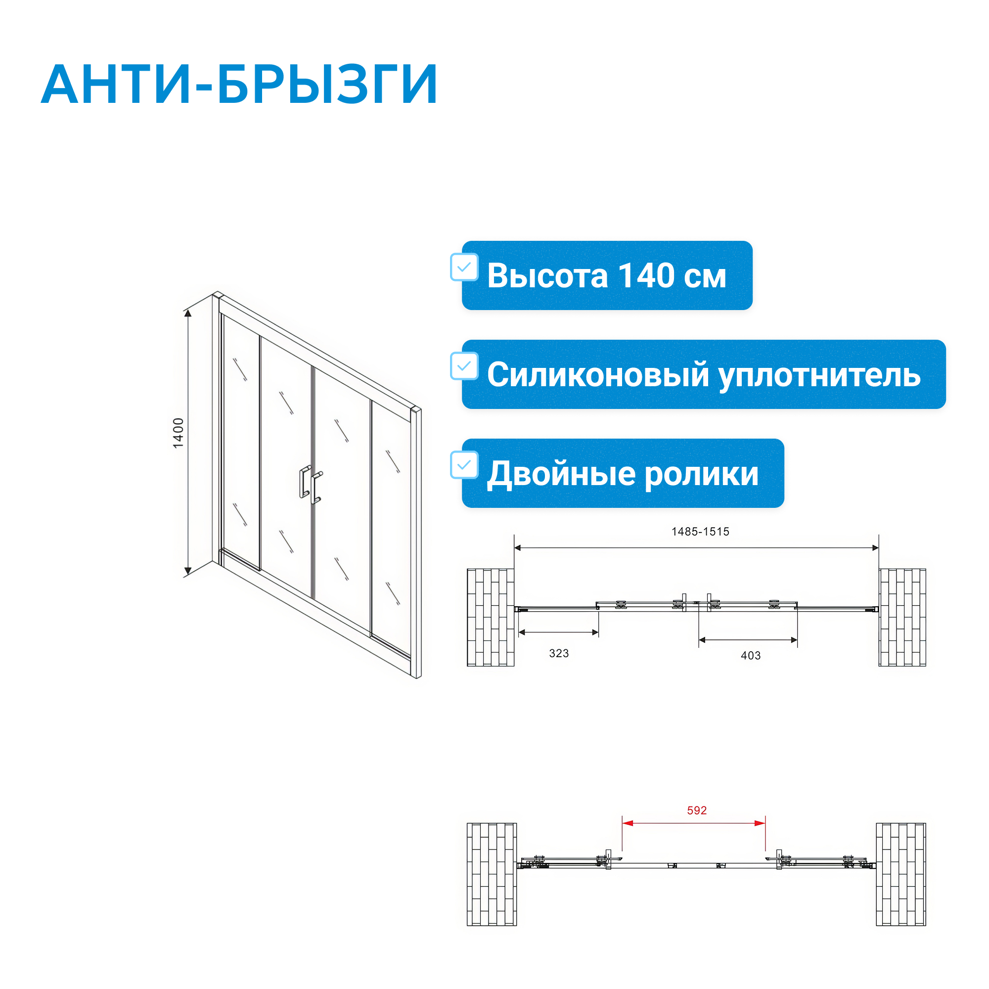 Шторка на ванну ABBER Schwarzer Diamant AG57150M
