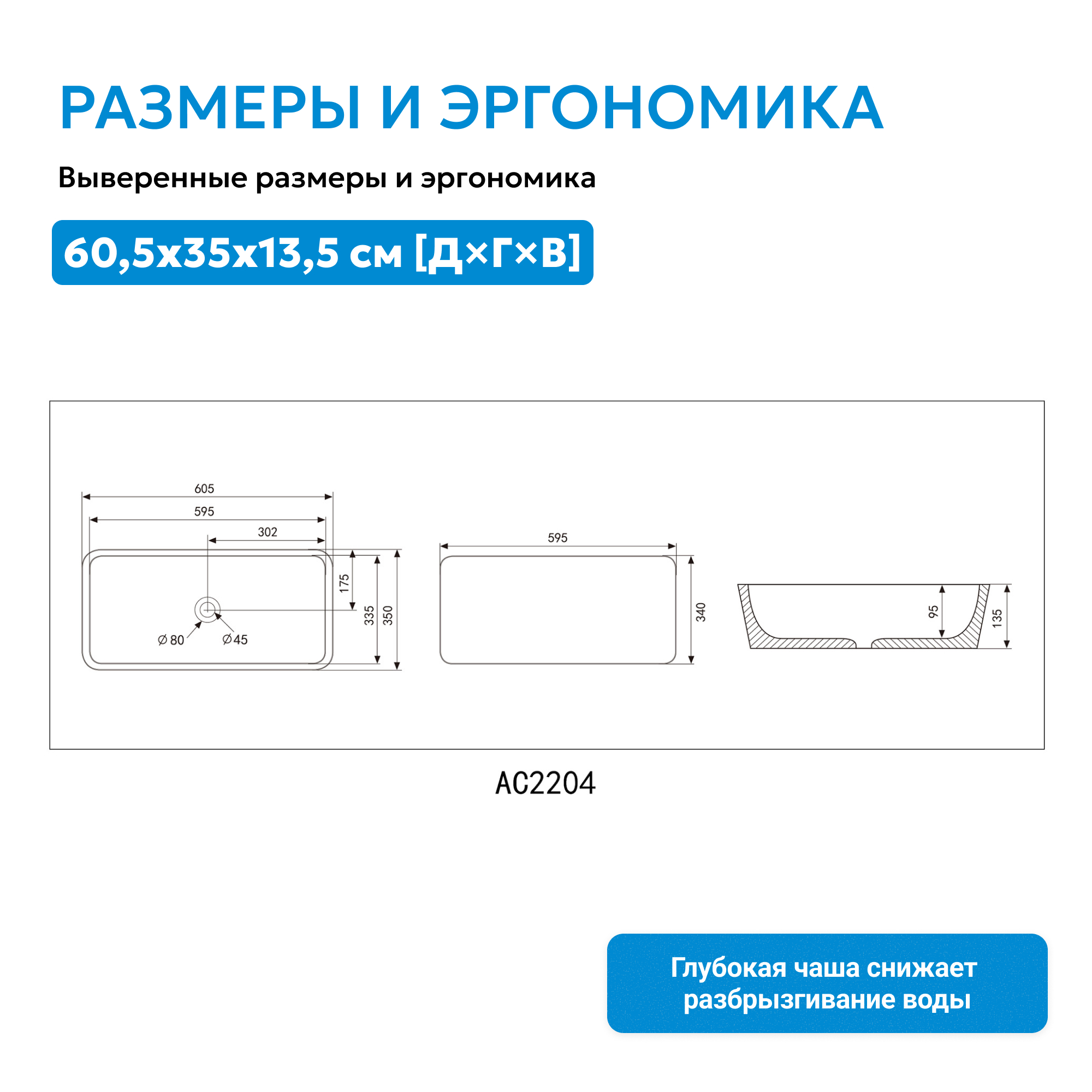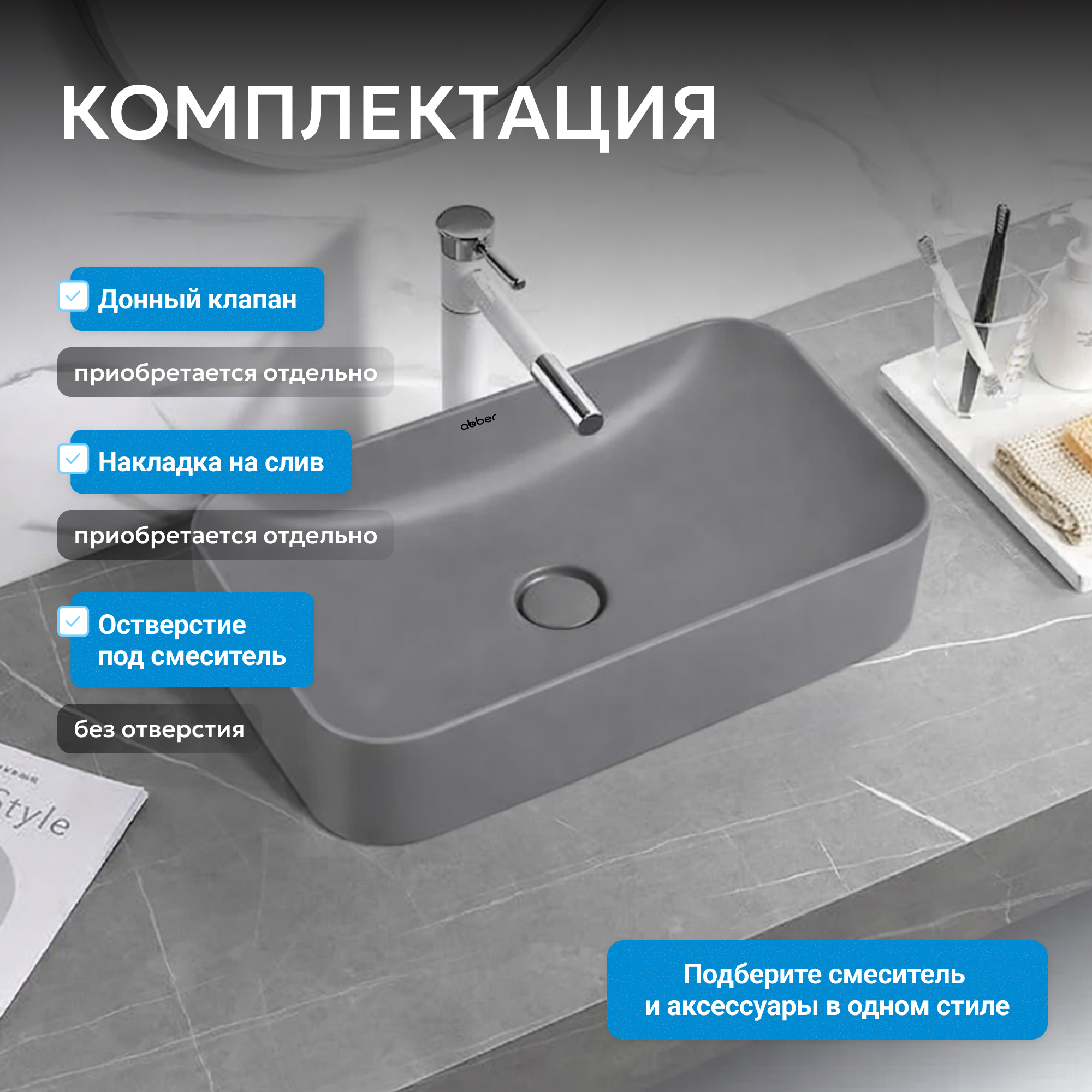 Раковина накладная ABBER Rechteck AC2204MG серая матовая
