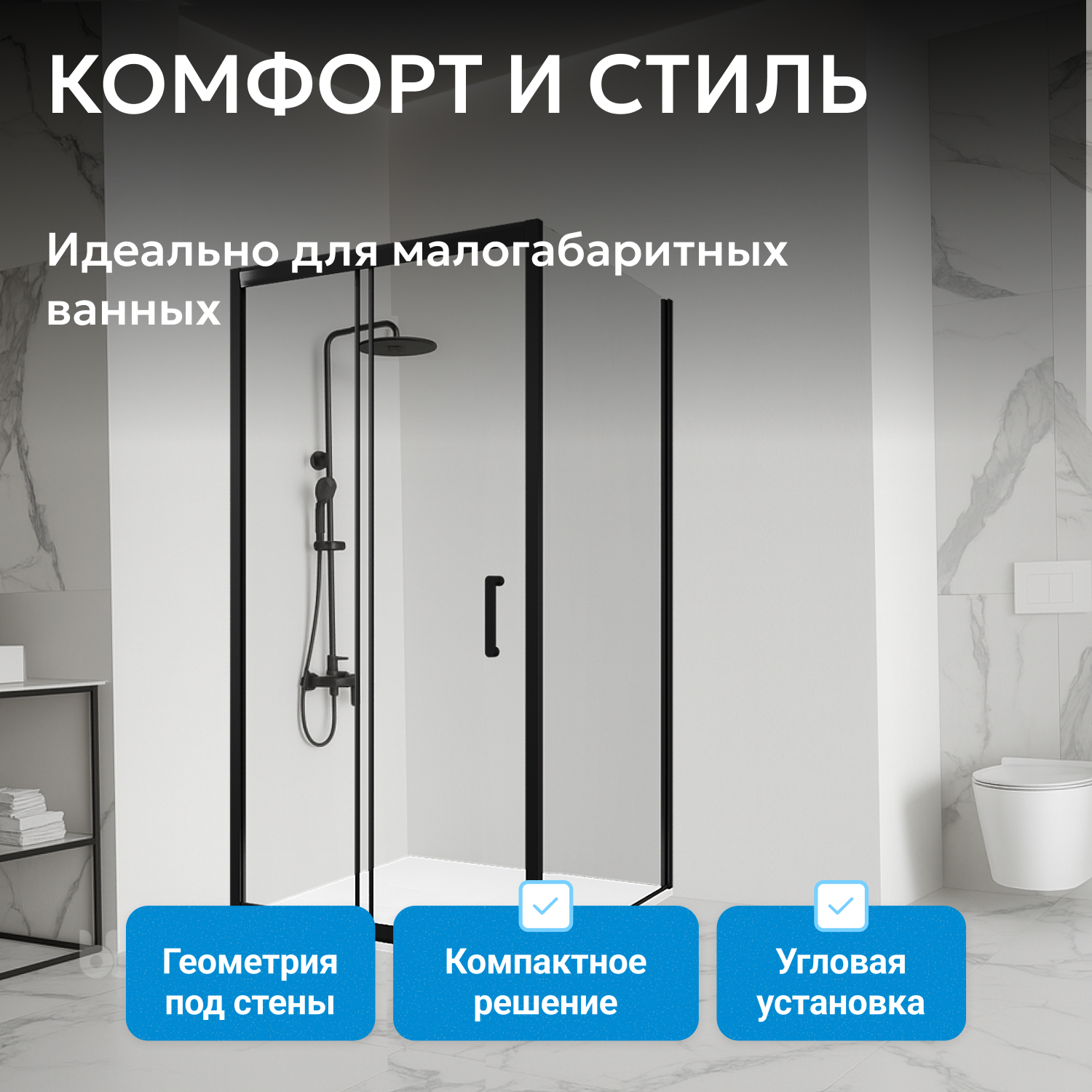 Модель предназначена для установки в угол и совместима с низкими поддонами. Раздвижная система с двойными роликами обеспечивает плавное перемещение двери. Стекло легко очищается и визуально расширяет пространство. Ширина входа — 444 мм, комплектация не включает поддон, позволяя выбрать подходящий вариант.