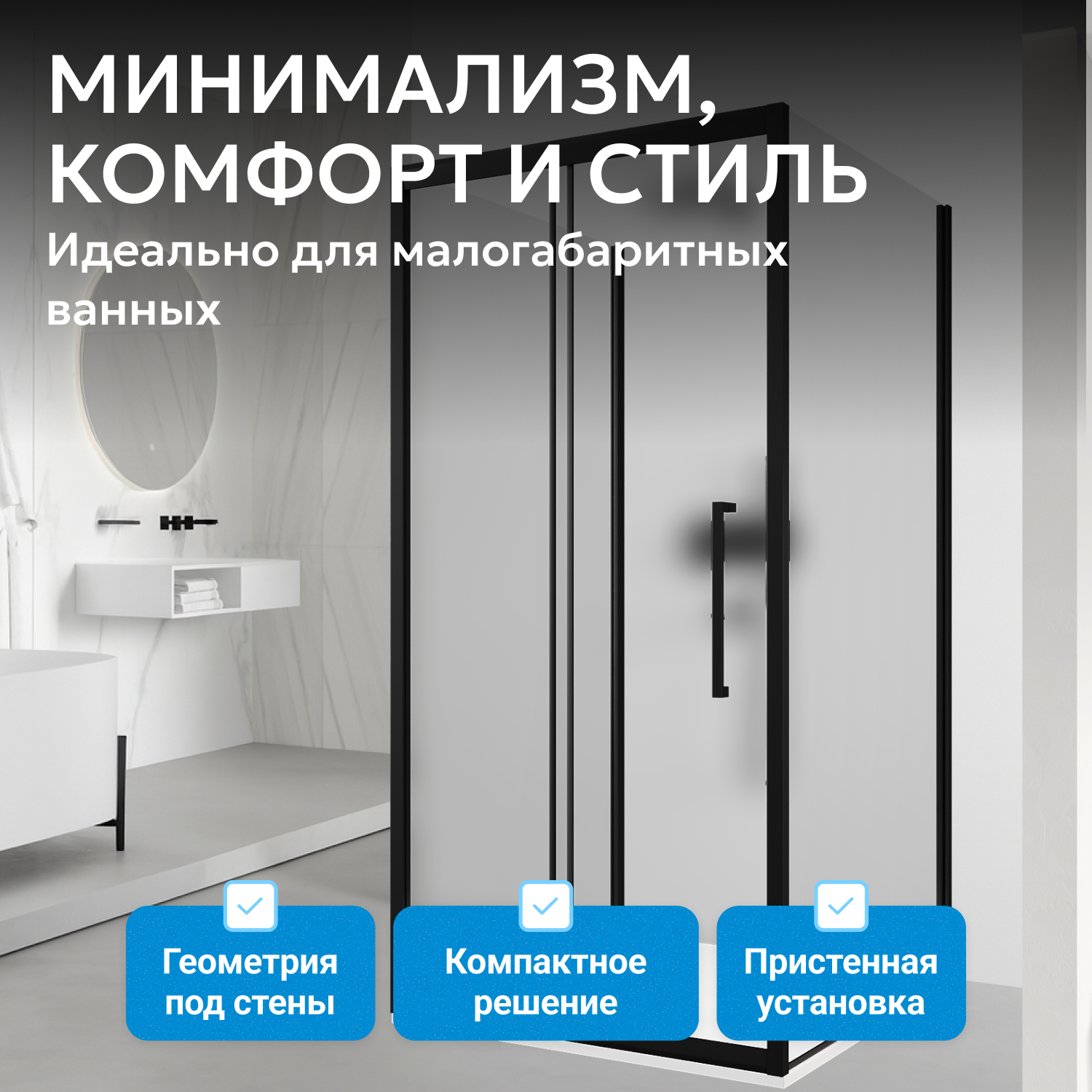 Уголок крепится непосредственно к стене, что экономит место и упрощает установку. Поддон приобретается отдельно и совместим с низкими или стандартными моделями длиной и шириной 100 см. Модификация подходит для большинства стандартных поддонов этого размера.