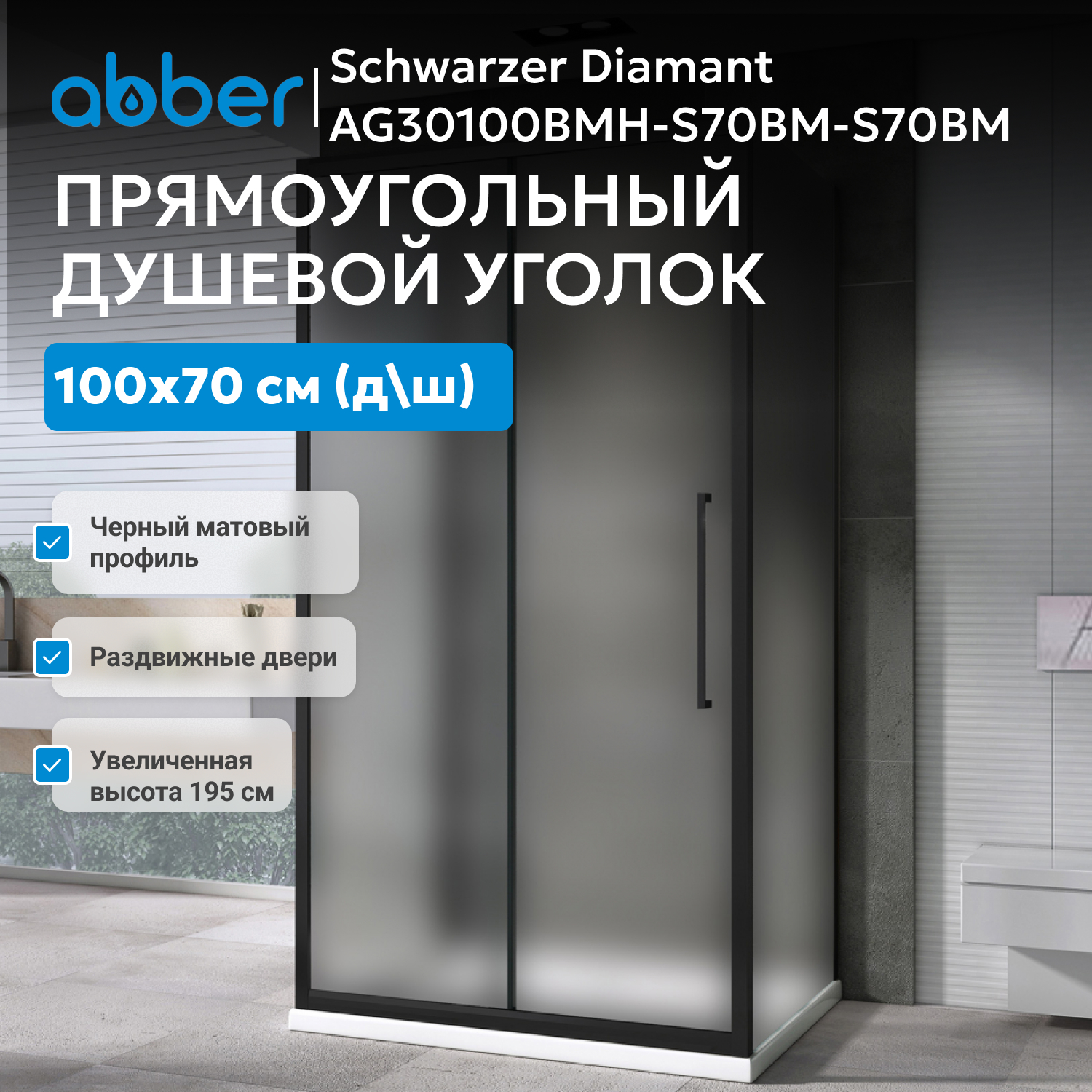 Душевой уголок ABBER Schwarzer Diamant AG30100BMH-S70BM-S70BM предназначен для ванных комнат с интенсивной эксплуатацией. Конструкция предусматривает пристенный монтаж с одной раздвижной дверью, что экономит пространство и облегчает доступ. Прямоугольная форма и матовое закаленное стекло толщиной 6 мм создают лаконичный внешний вид для современных интерьеров.