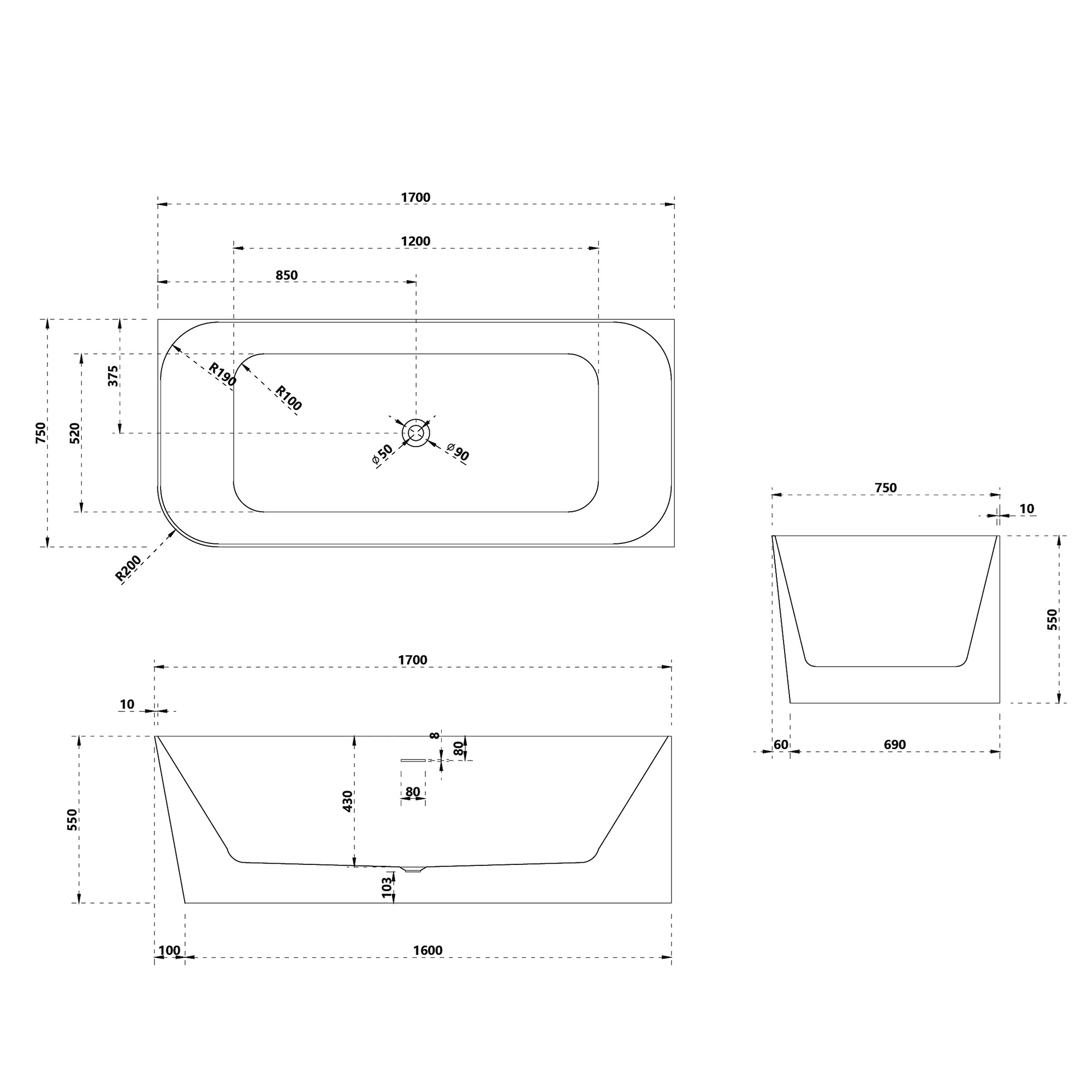 Ванна из искусственного камня ABBER Stein AS9621-1.7 R белая матовая