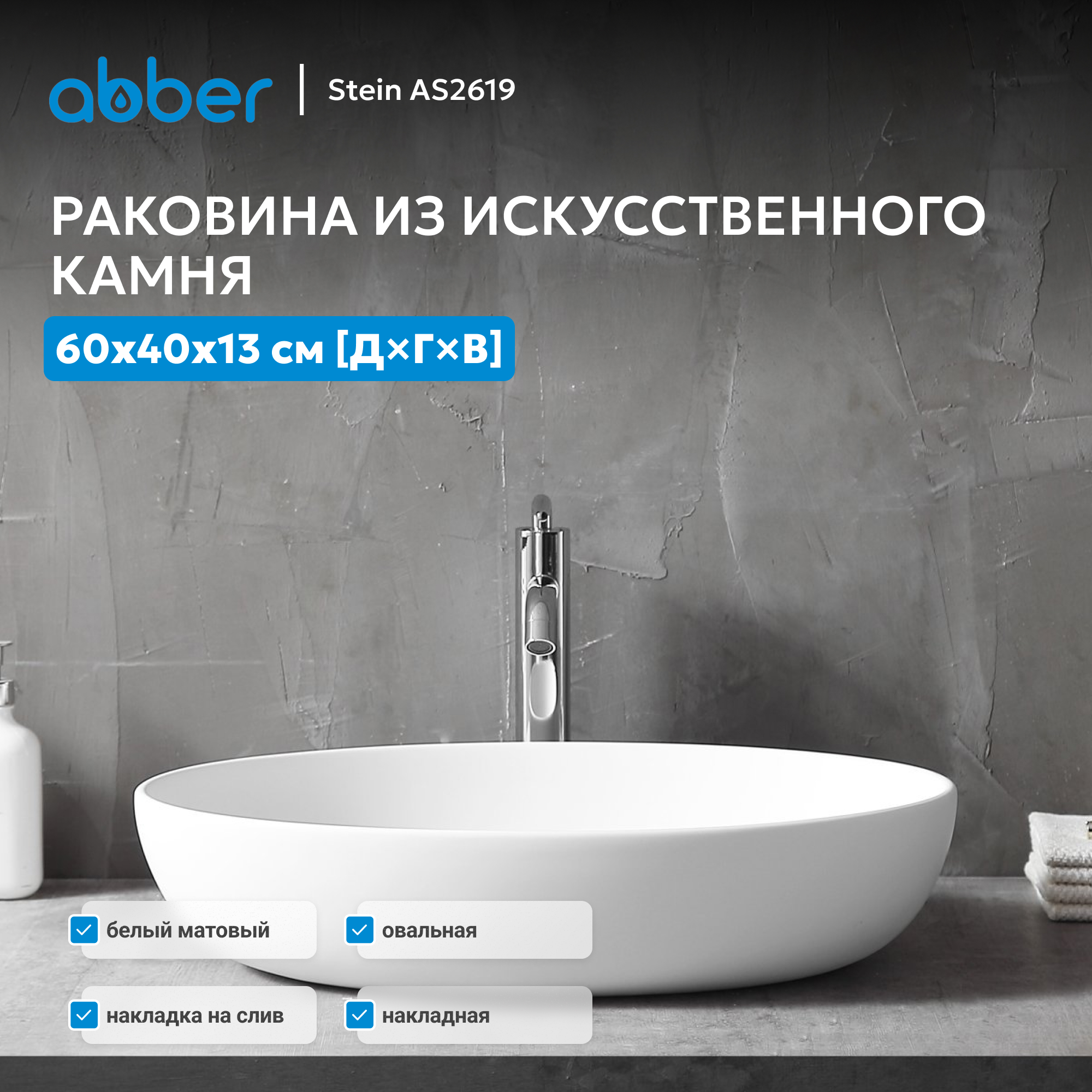 Раковина накладная ABBER Stein AS2619 белая матовая