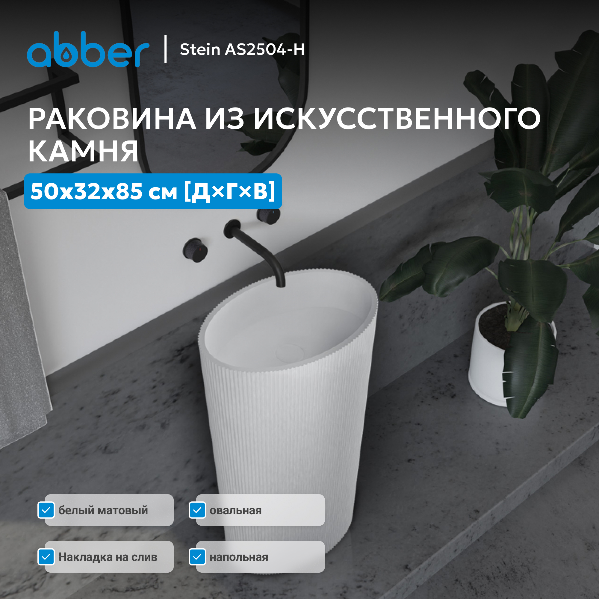 Раковина отдельностоящая ABBER Stein AS2504-H белая матовая