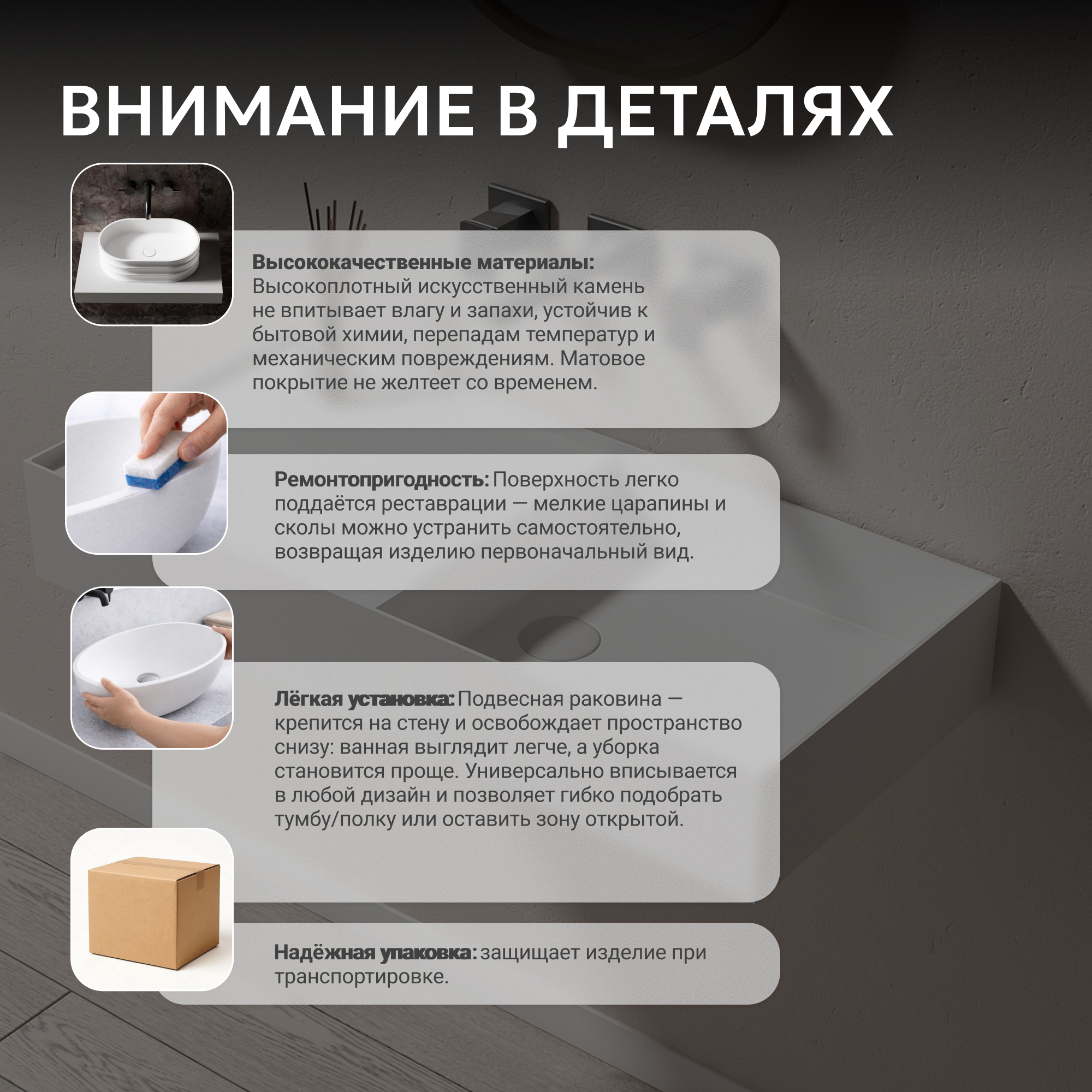 Раковина подвесная ABBER Stein AS2648 белая матовая