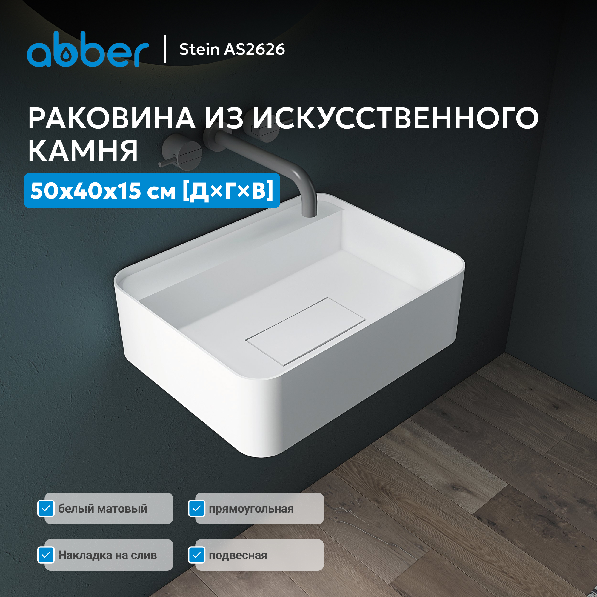 Раковина подвесная ABBER Stein AS2626 белая матовая
