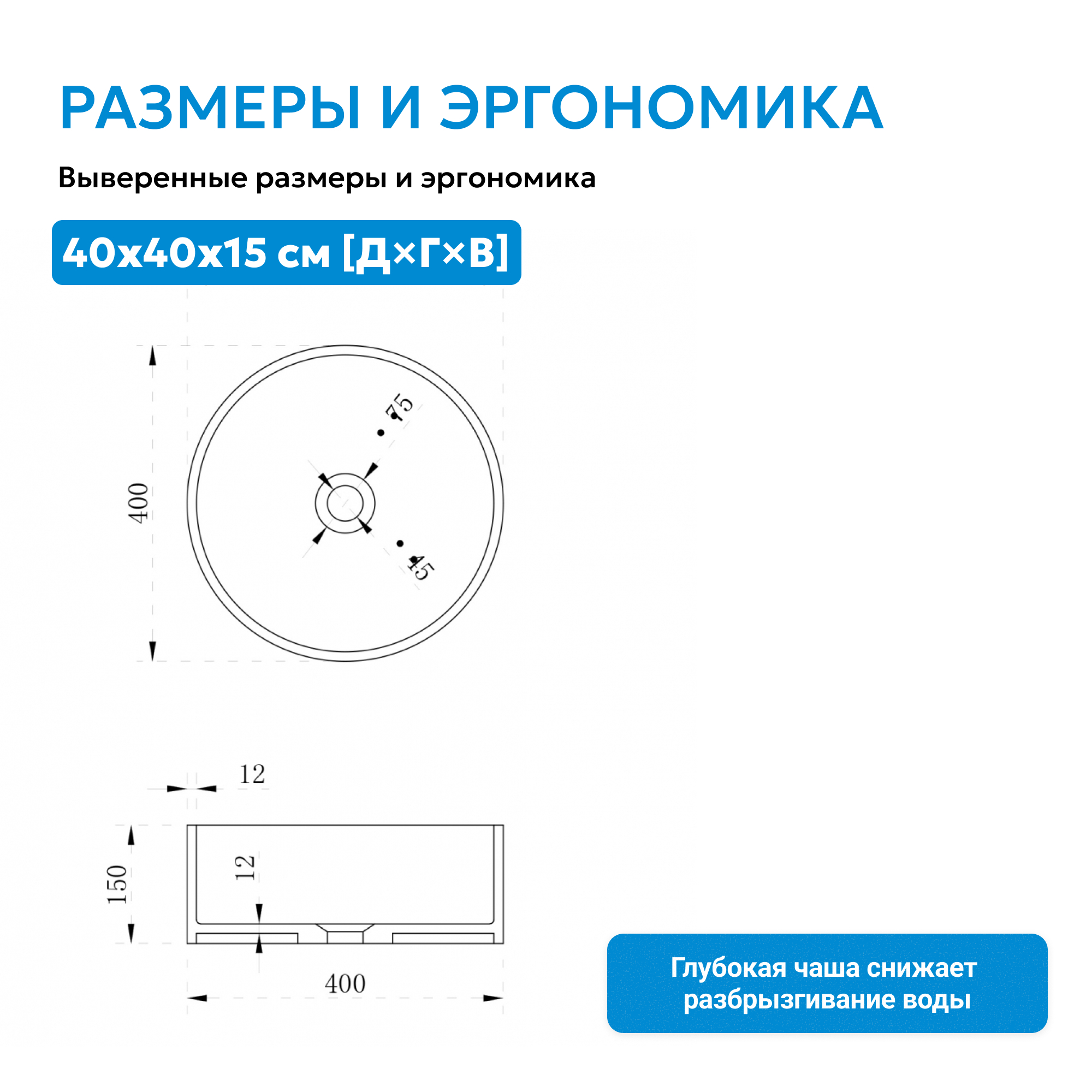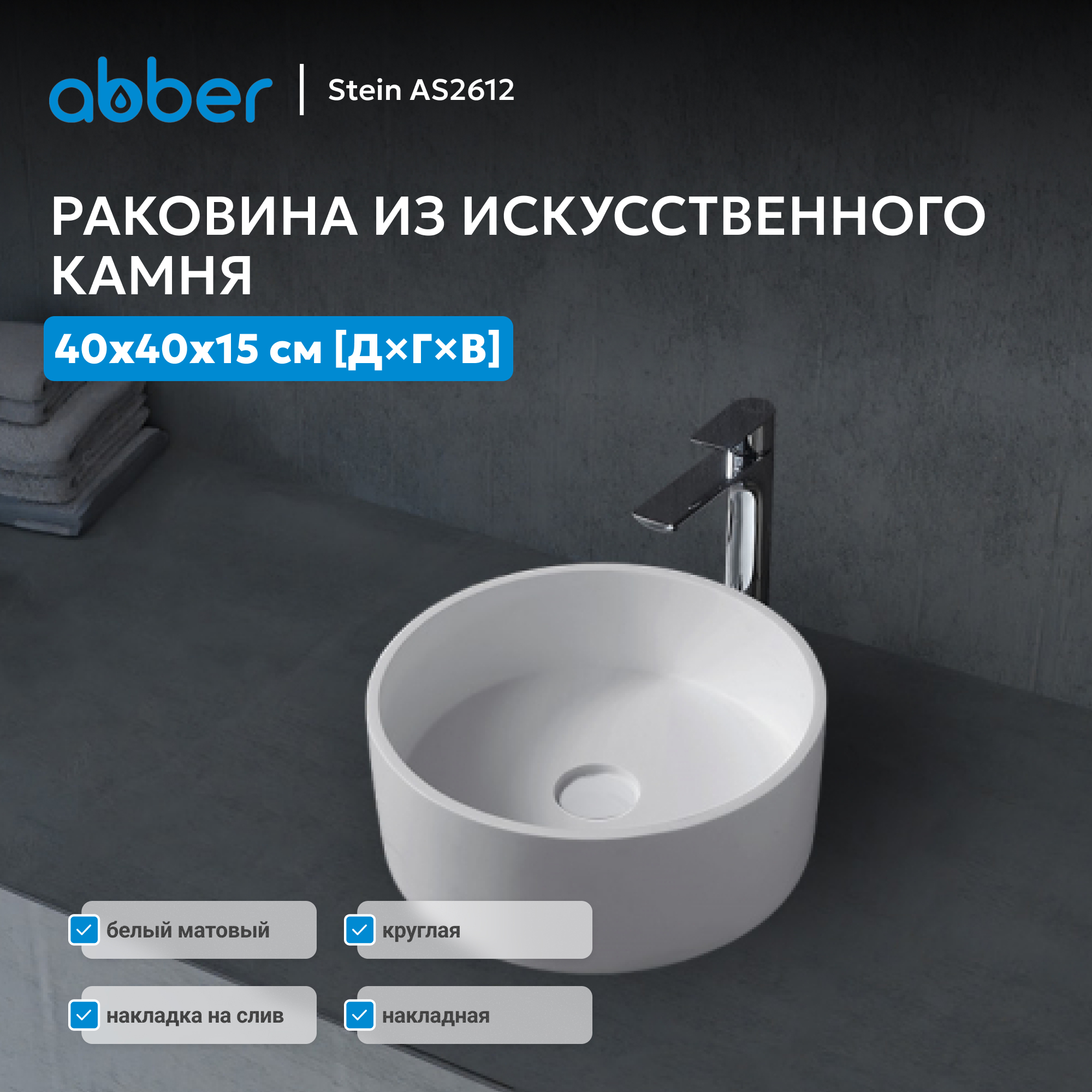 Раковина накладная ABBER Stein AS2612 белая матовая
