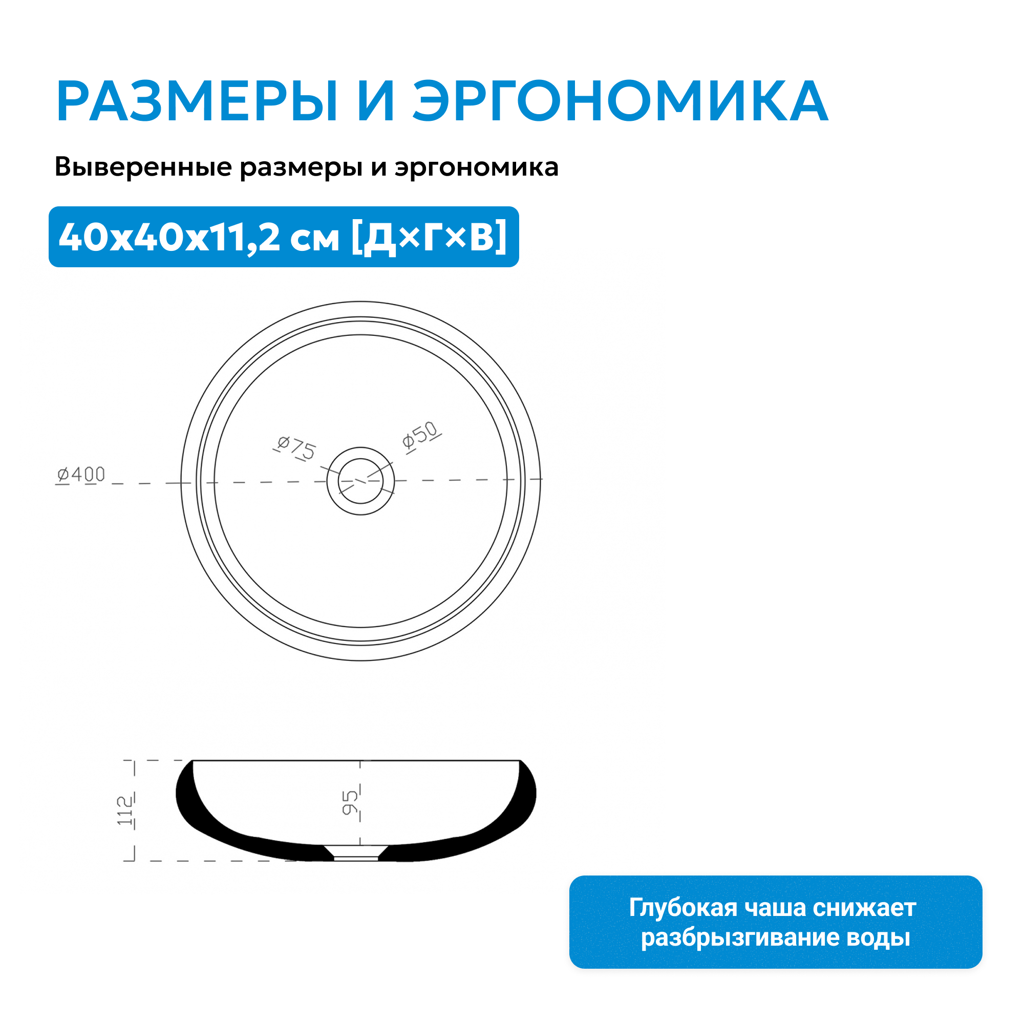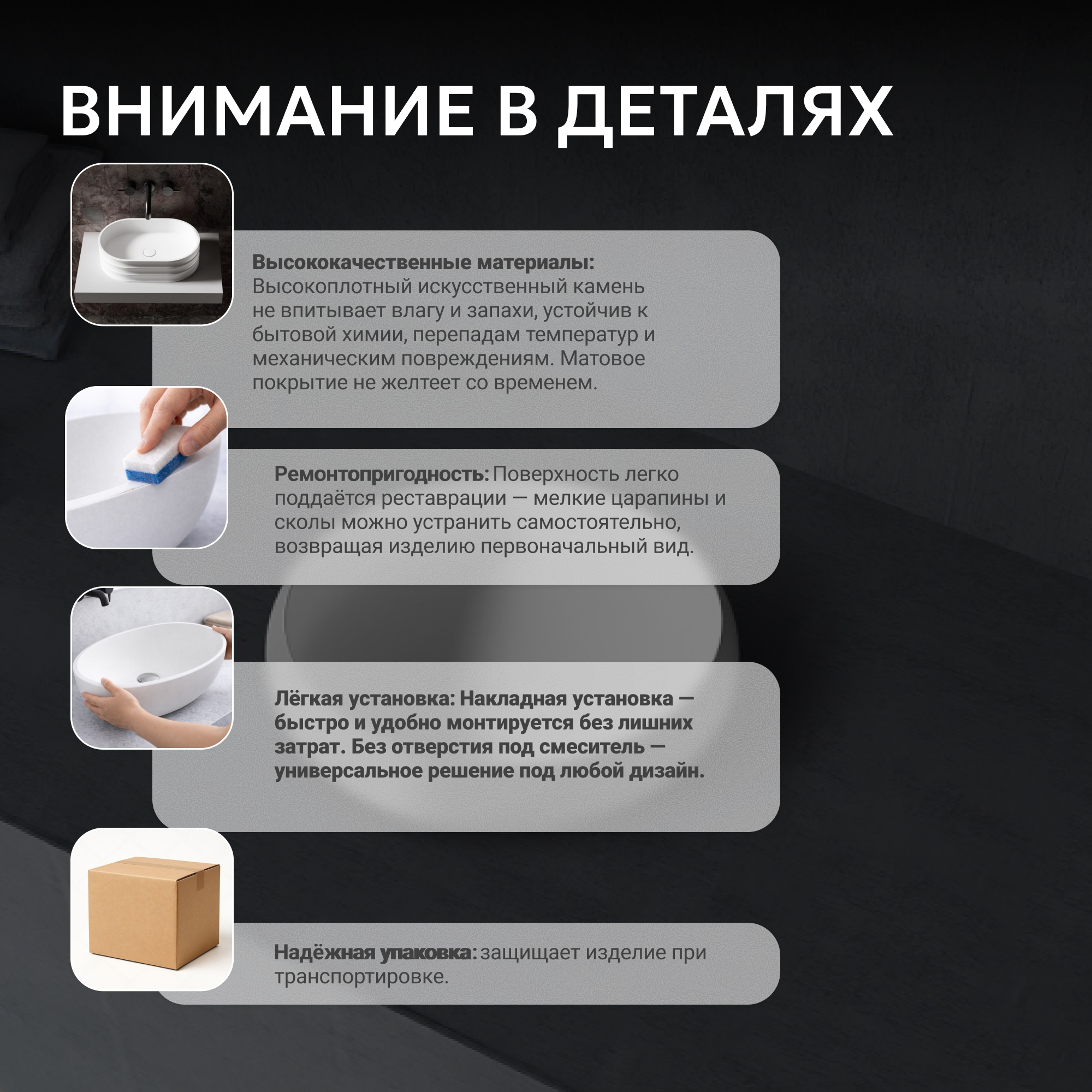 Раковина накладная ABBER Stein AS2613 белая матовая